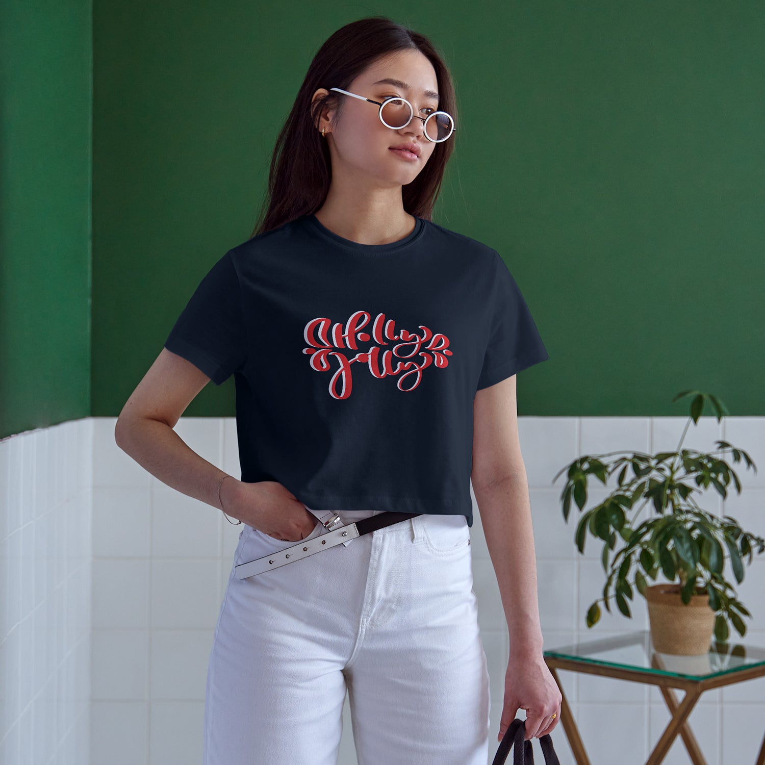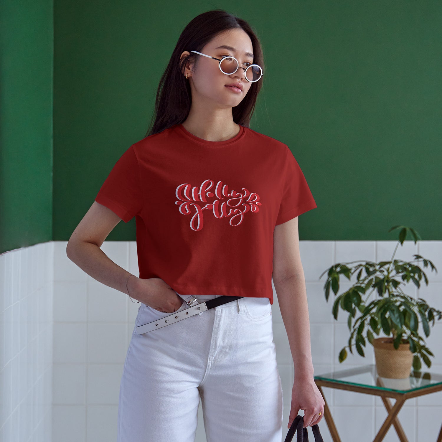 Holly Jolly Cotton Round Neck Half Sleeve Crop Top | Women