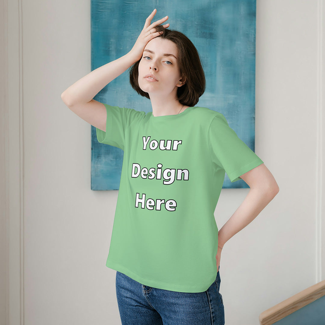 Jade Round Neck Cotton Classic Crew T-shirt Front Customized Design | Unisex