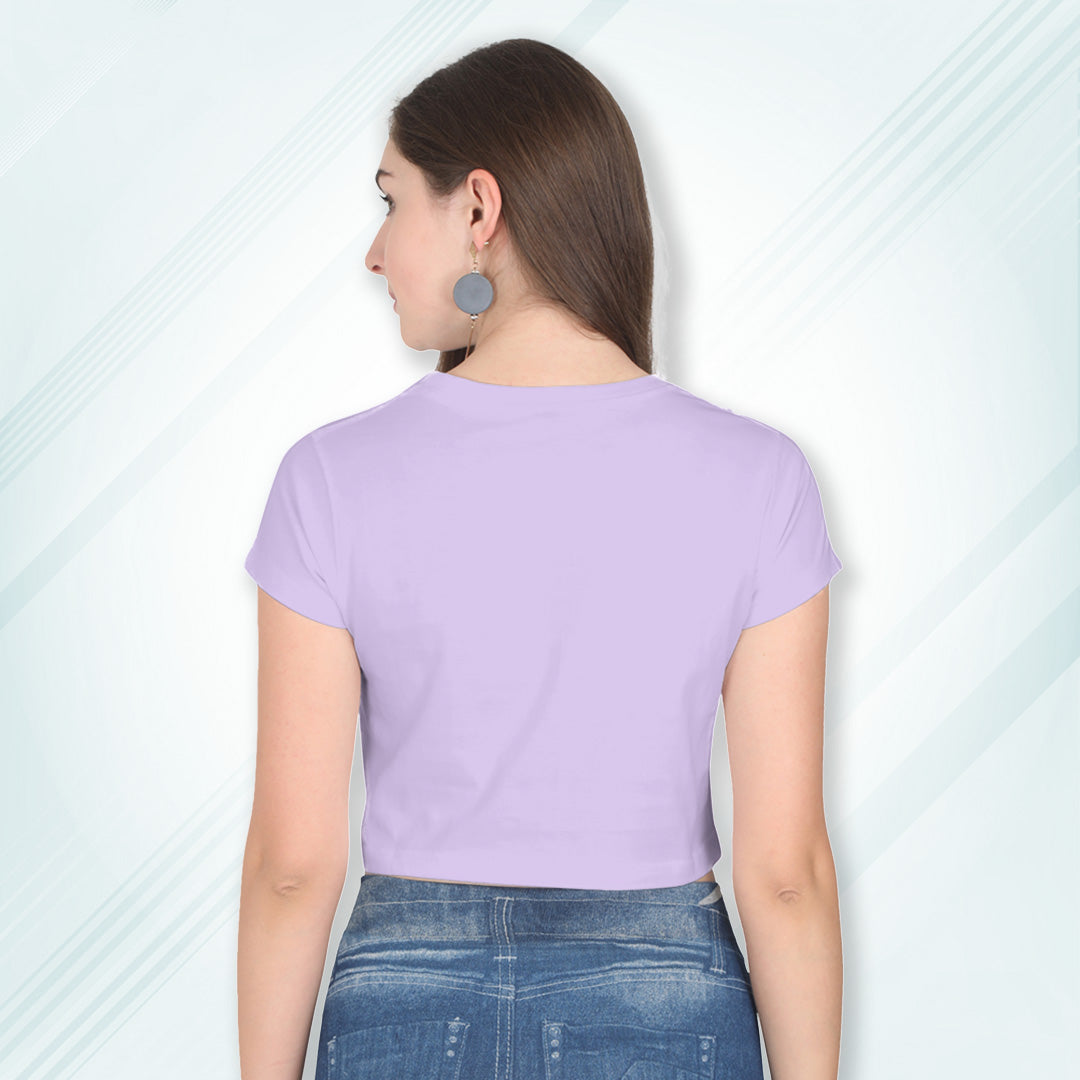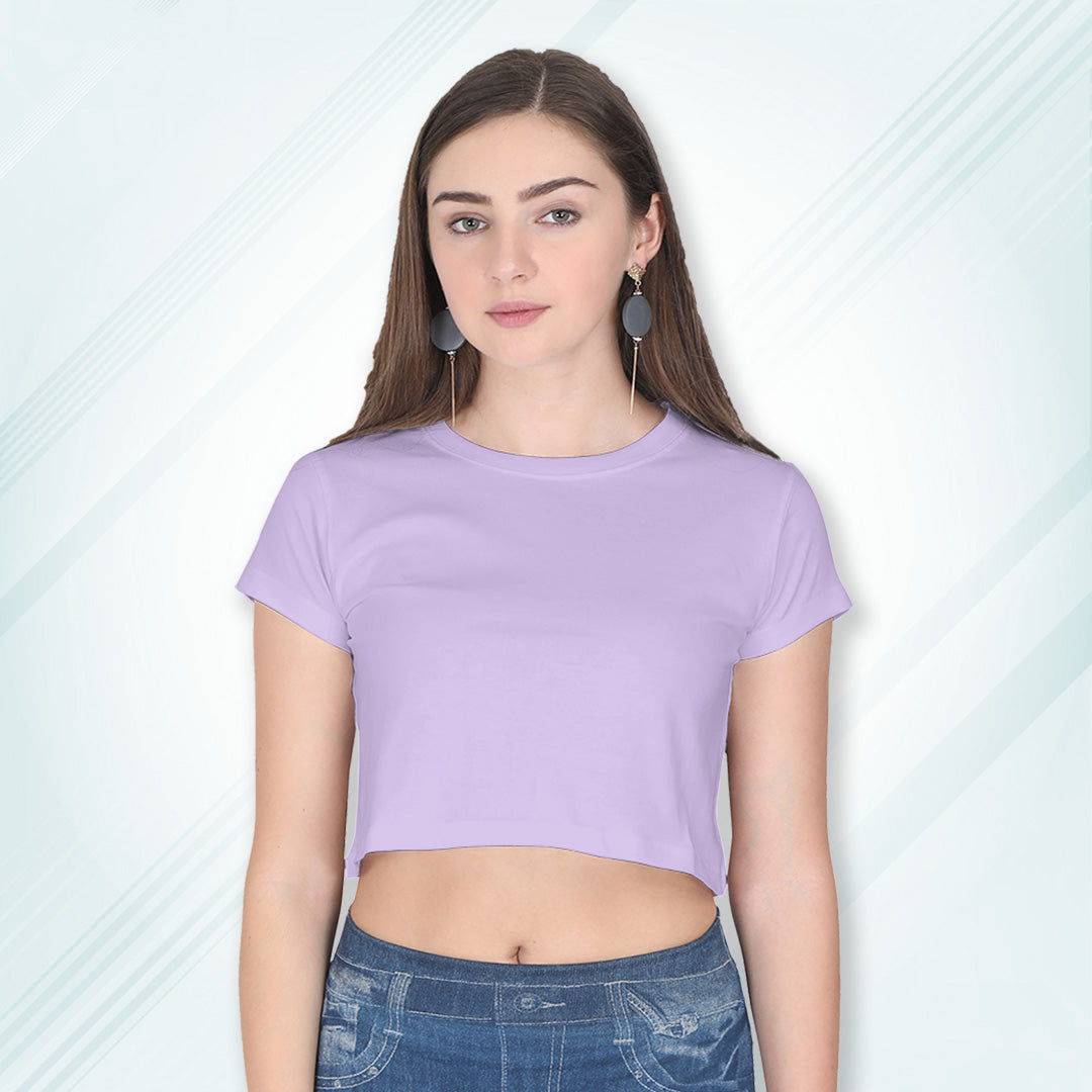 Lavender Cotton Plain Round Neck Half Sleeve Crop Top | Women
