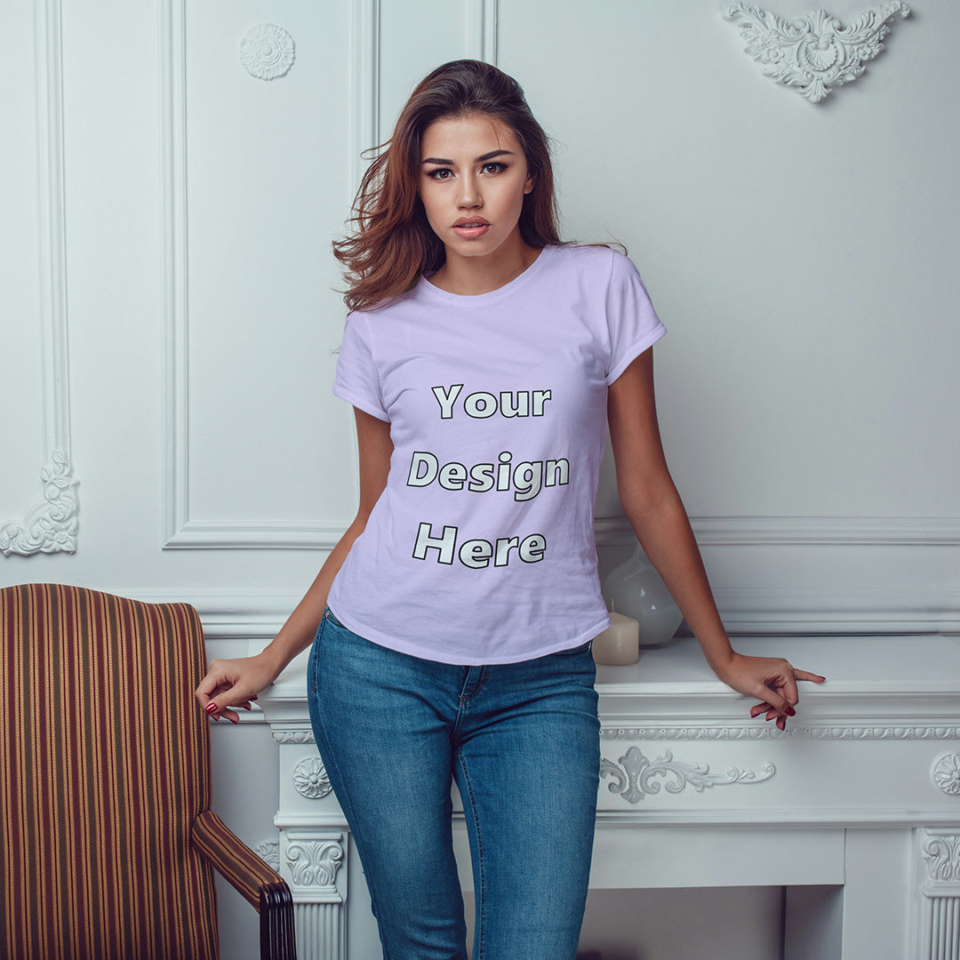 Lavender Round Neck Classic Customized T-Shirt Front Design | Women