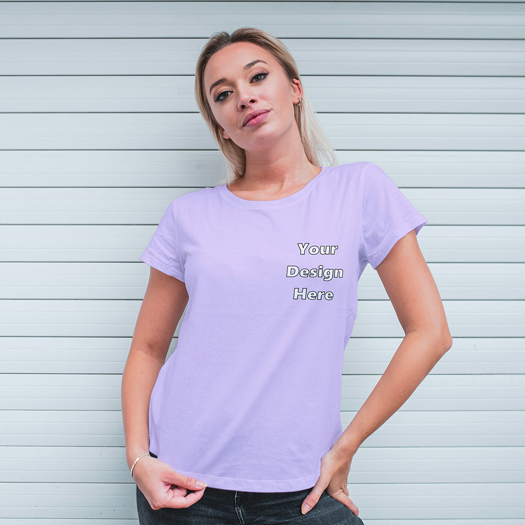 Lavender Round Neck Classic Customized T-Shirt Front Pocket Design | Women