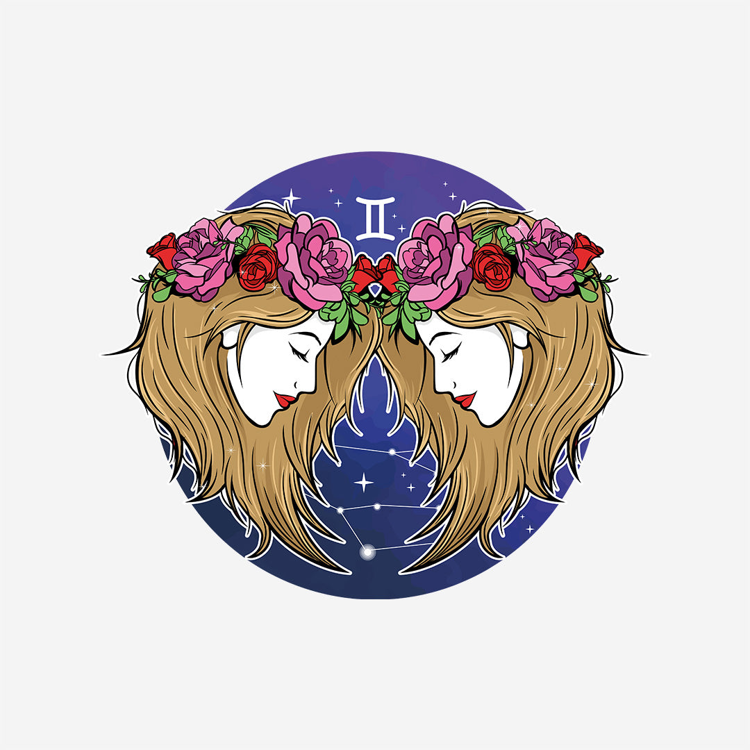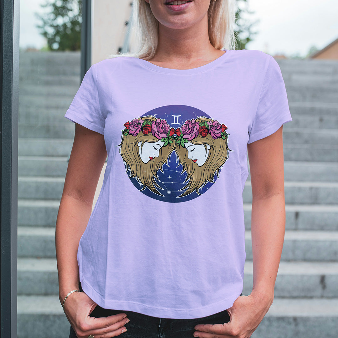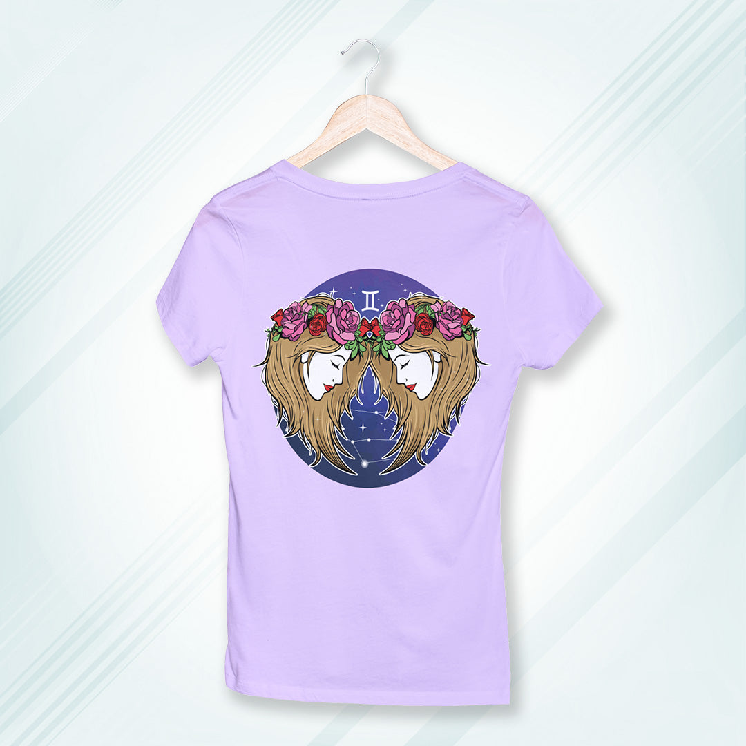 Lavender Round Neck Classic Printed Classic T-Shirt Gemini Horoscope | Women