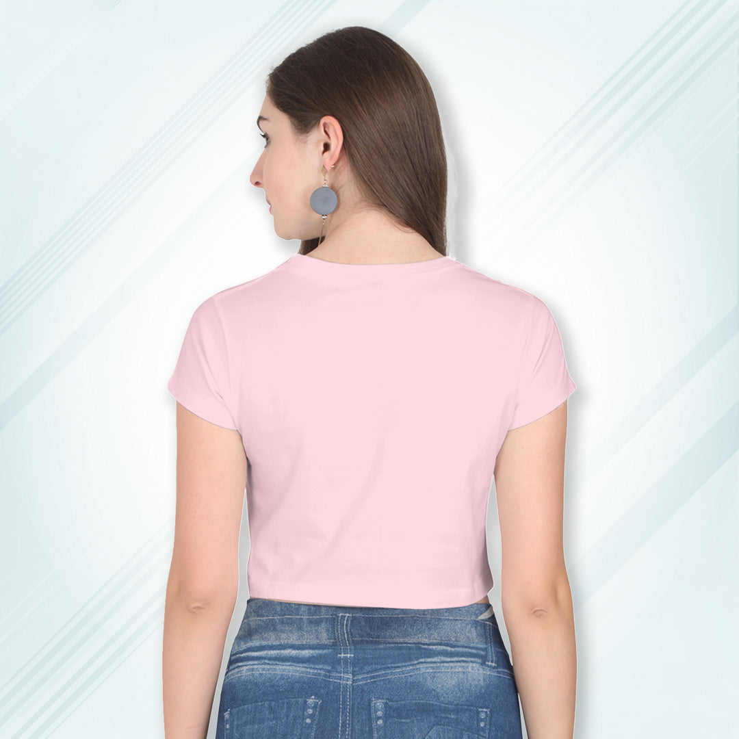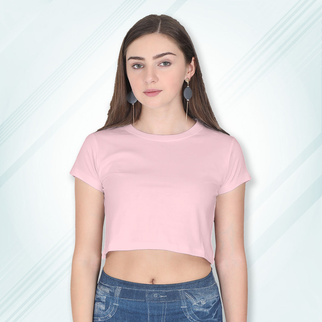 Light Pink Cotton Plain Round Neck Half Sleeve Crop Top | Women