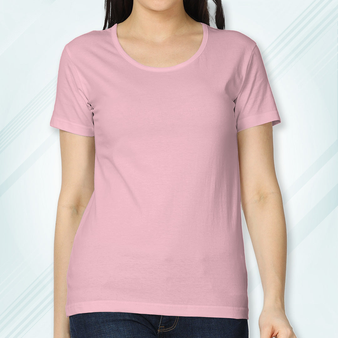 Light Pink Round Neck Classic Solid T-shirt | Women