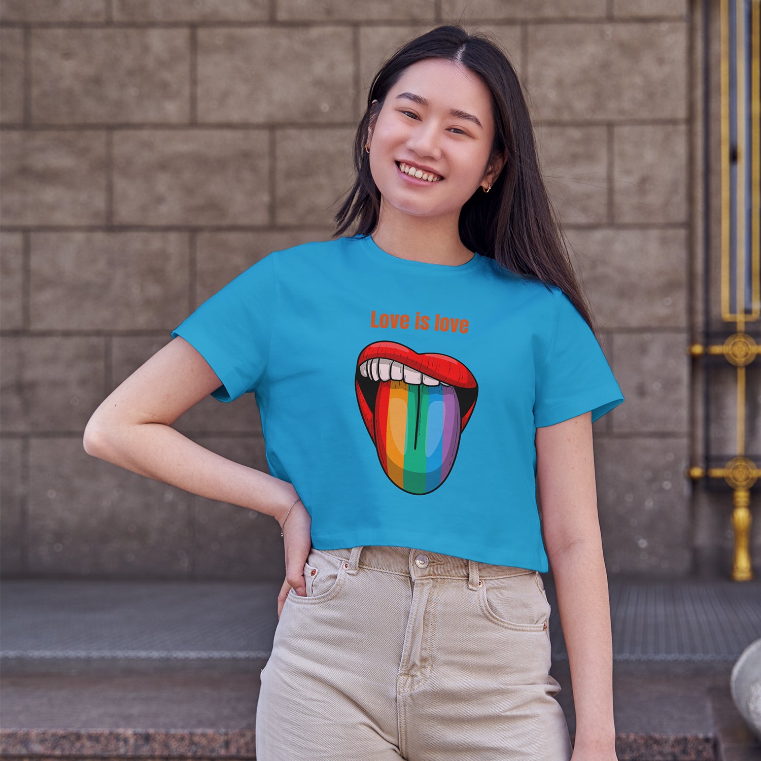 Love in Love Pride Tongue Cotton Round Neck Half Sleeve Crop Top | Women