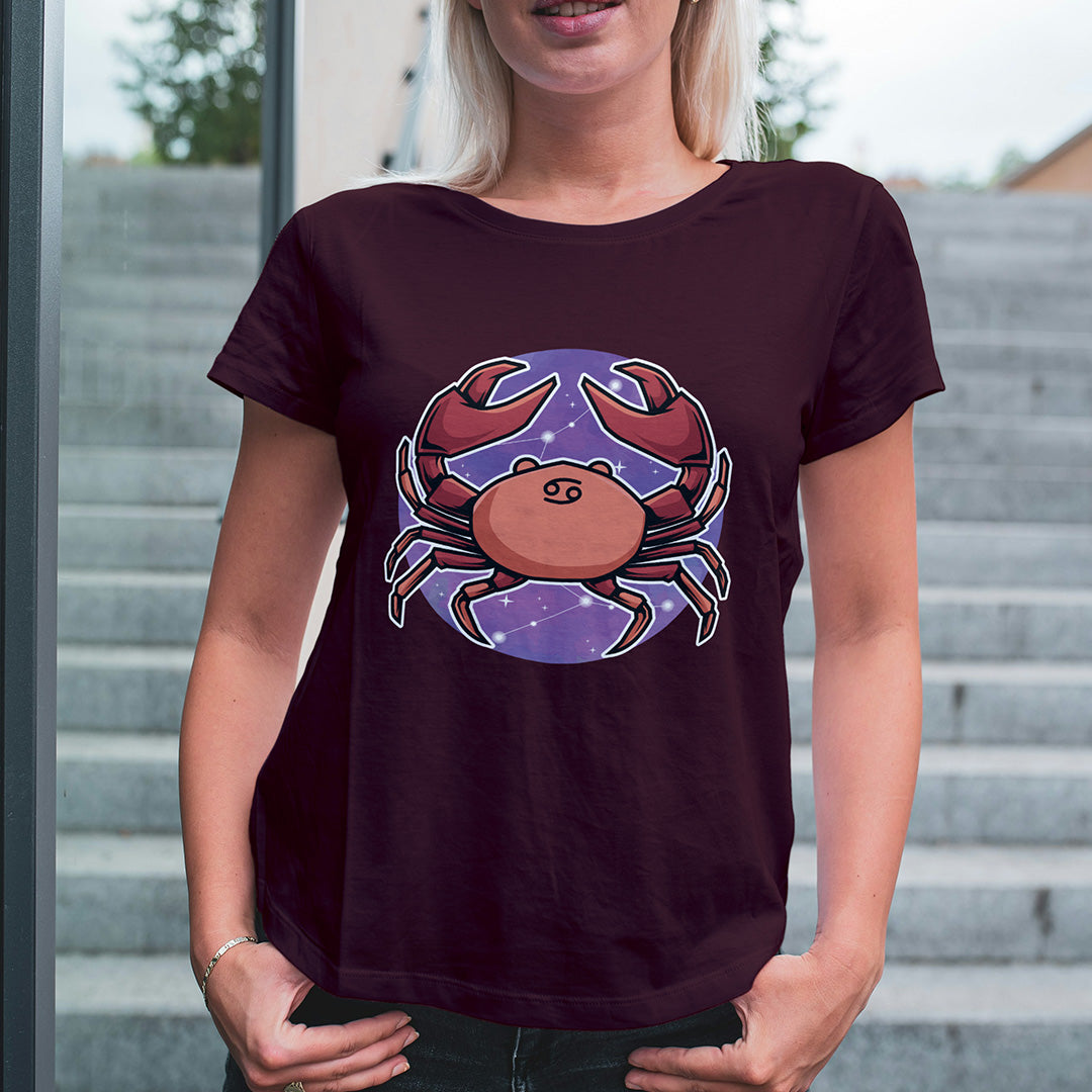 Maroon Round Neck Classic Printed Classic T-Shirt Cancer Horoscope | Women