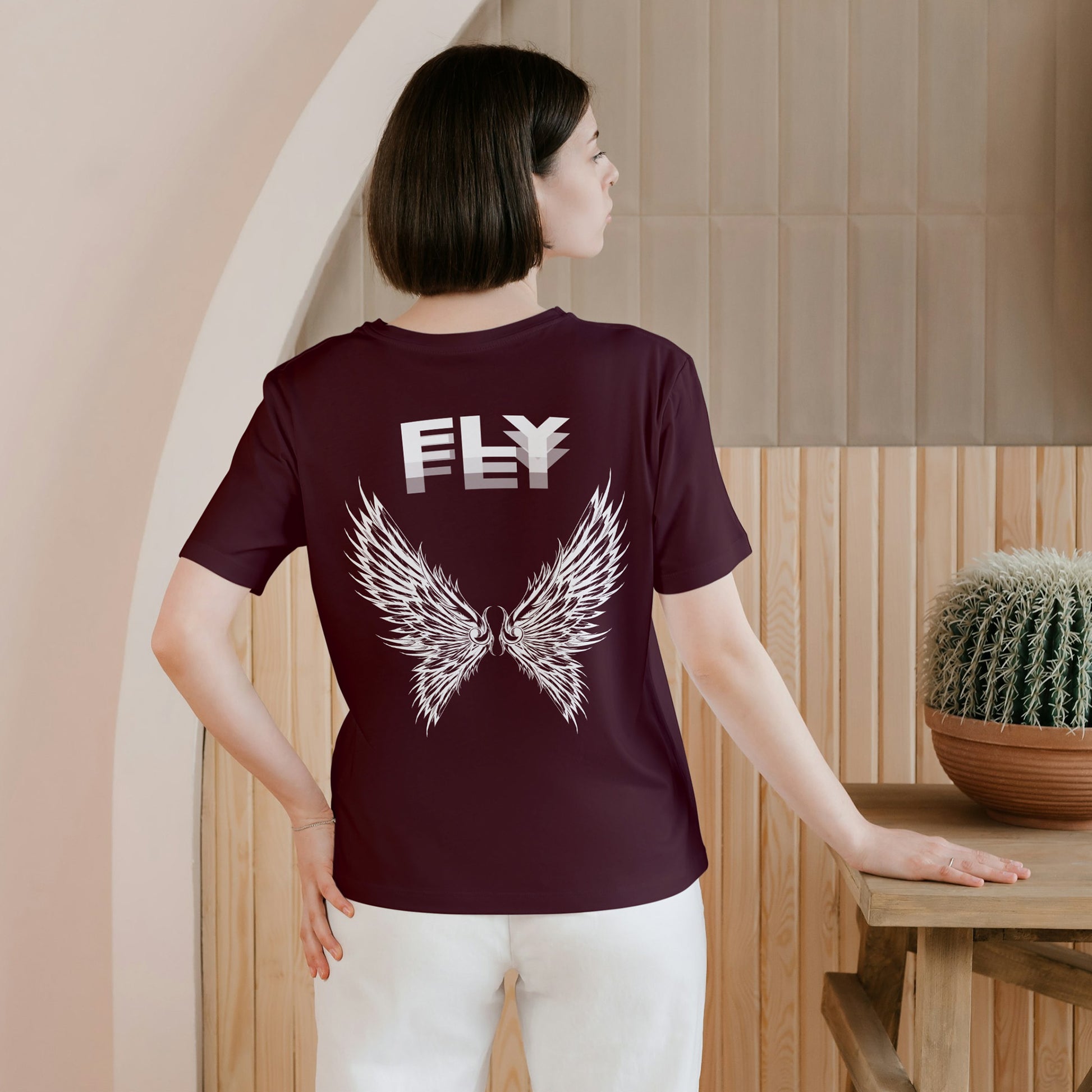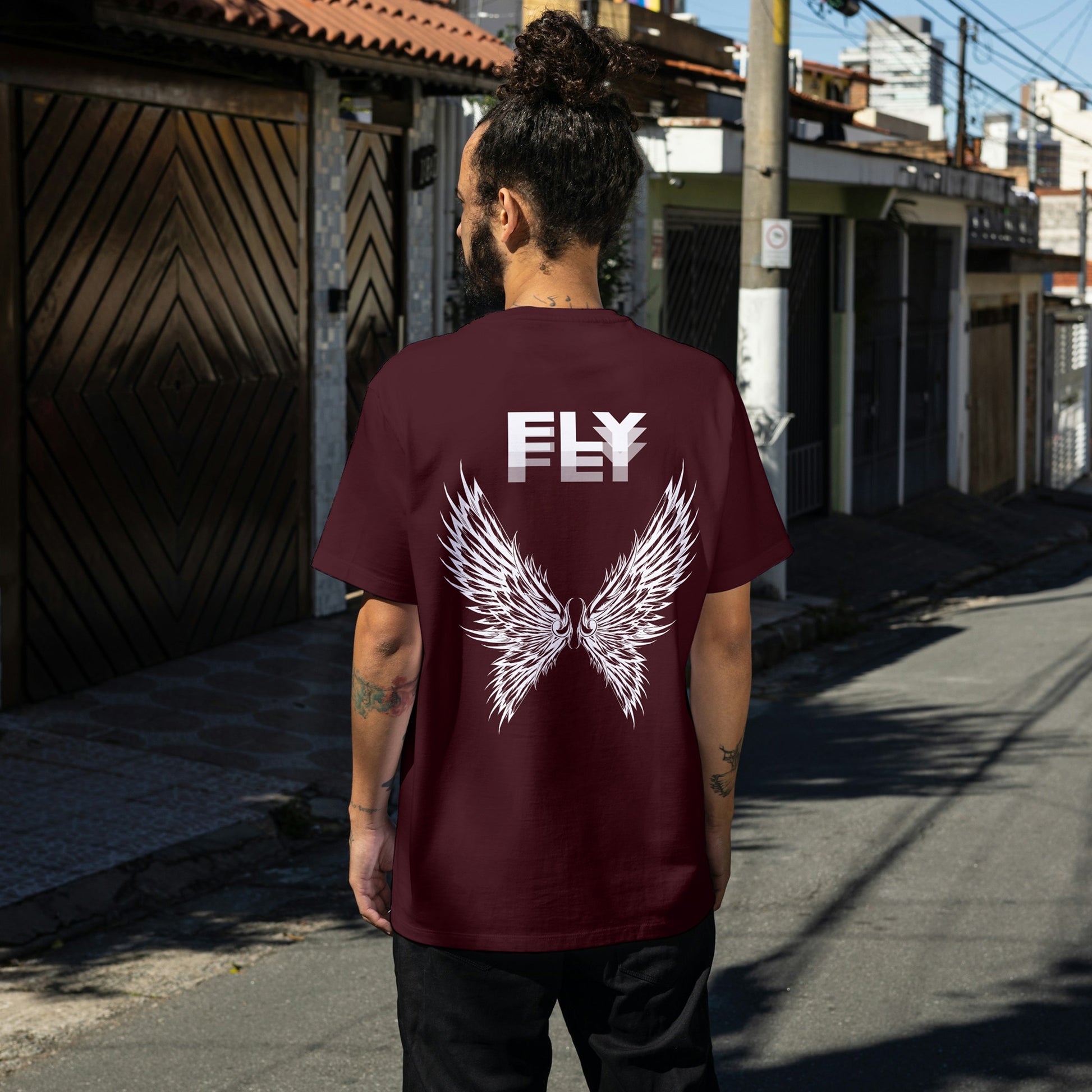 Maroon Round Neck Oversized Cotton Printed T-shirt Fly Wings Unisex