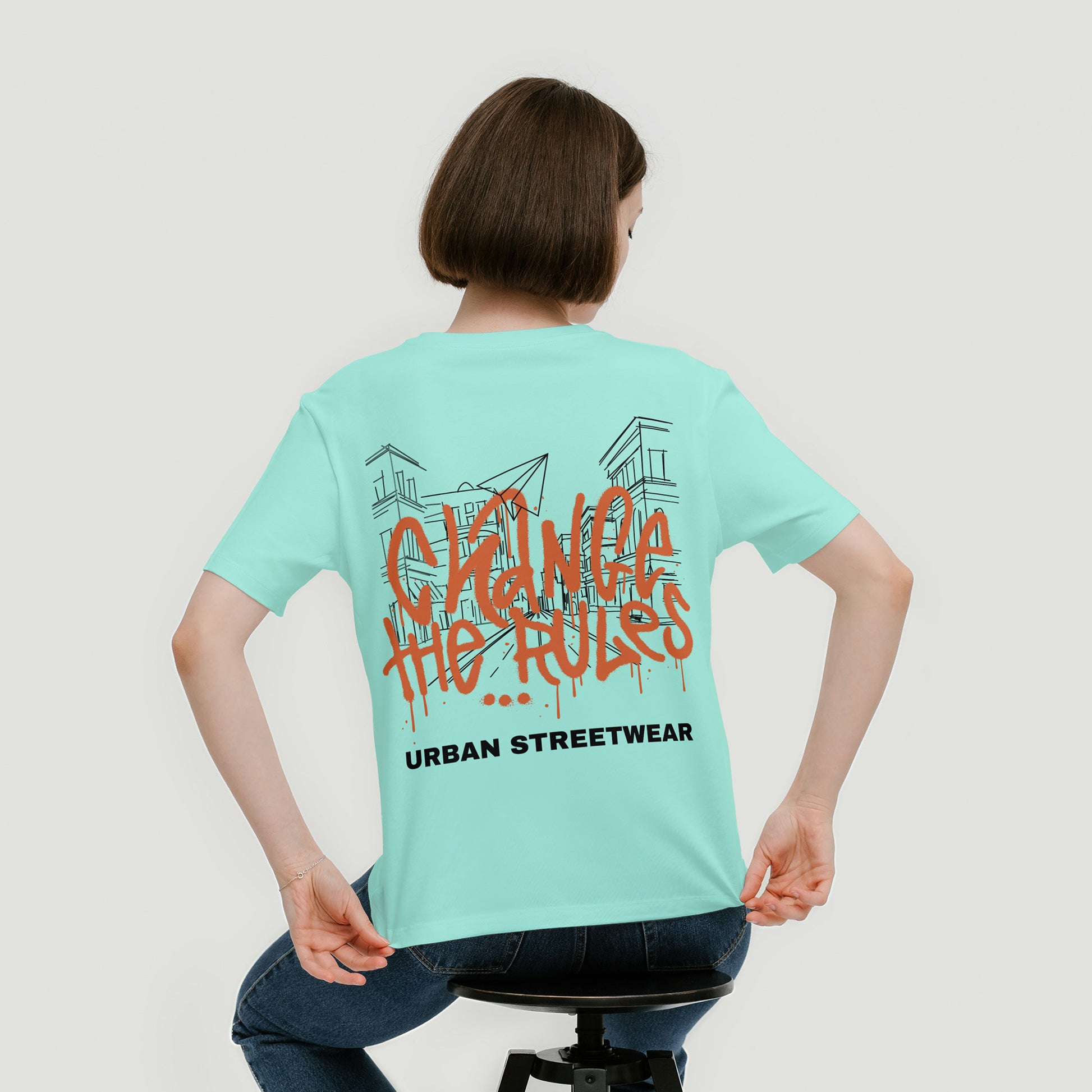 Mint Round Neck Oversized Cotton Printed T-shirt Change the Rules Urban Streetwear Unisex