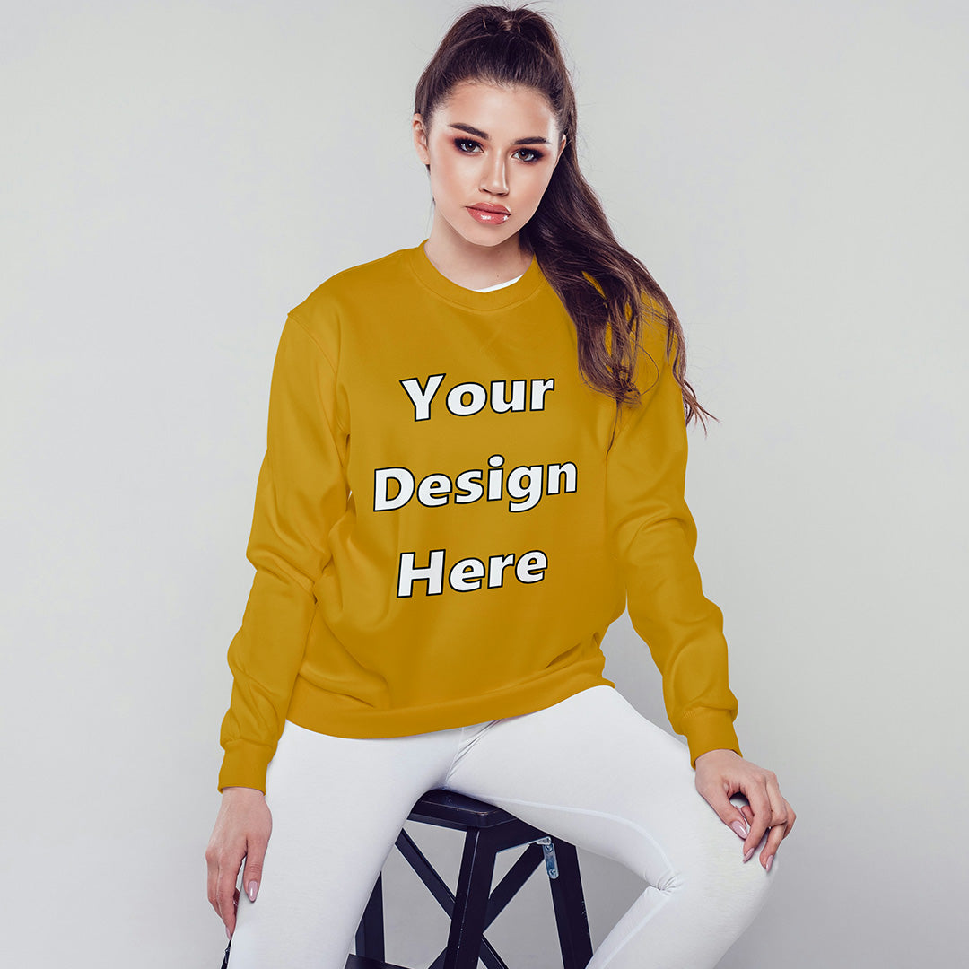 Mustard Yellow Front Customized Cotton Solid Sweatshirt | Unisex