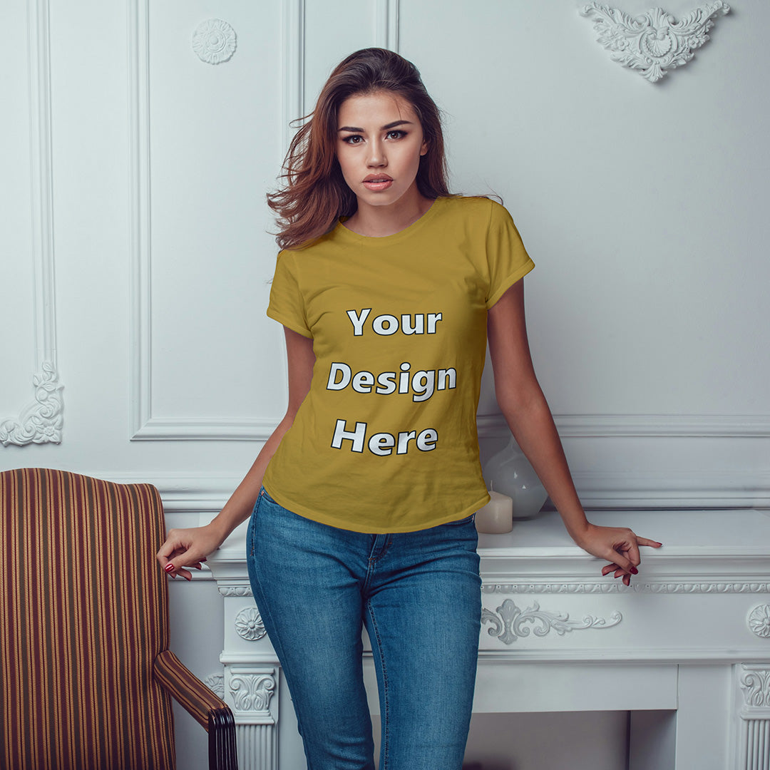 Mustard Yellow Round Neck Classic Customized T-Shirt Front Design | Women