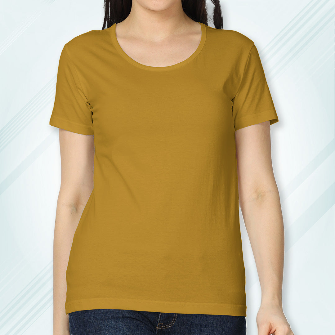 Mustard Yellow Round Neck Classic Solid T-shirt | Women