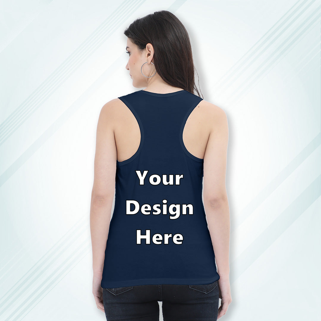 Navy Customized Regular Fit Tank Top Back Design | Women