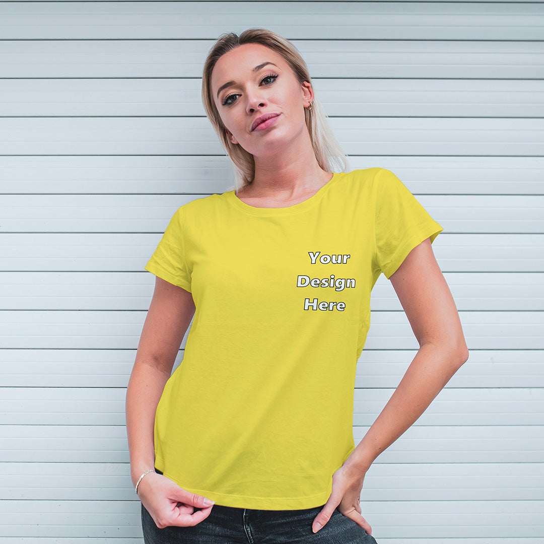 New Yellow Round Neck Classic Customized T-Shirt Front Pocket Design | Women