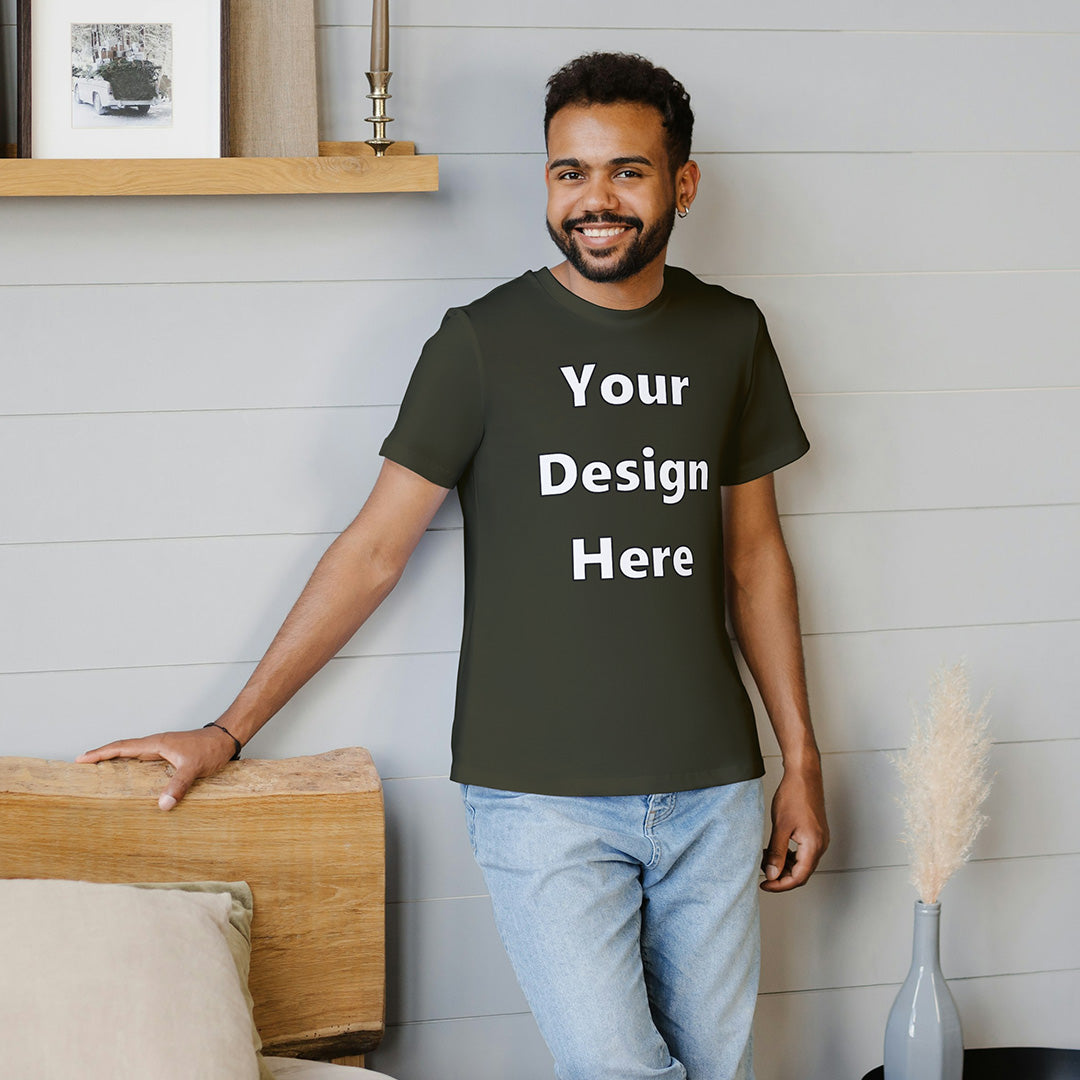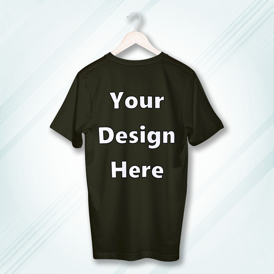 Olive Green Round Neck Cotton Classic Crew T-shirt Front Customized Design | Unisex