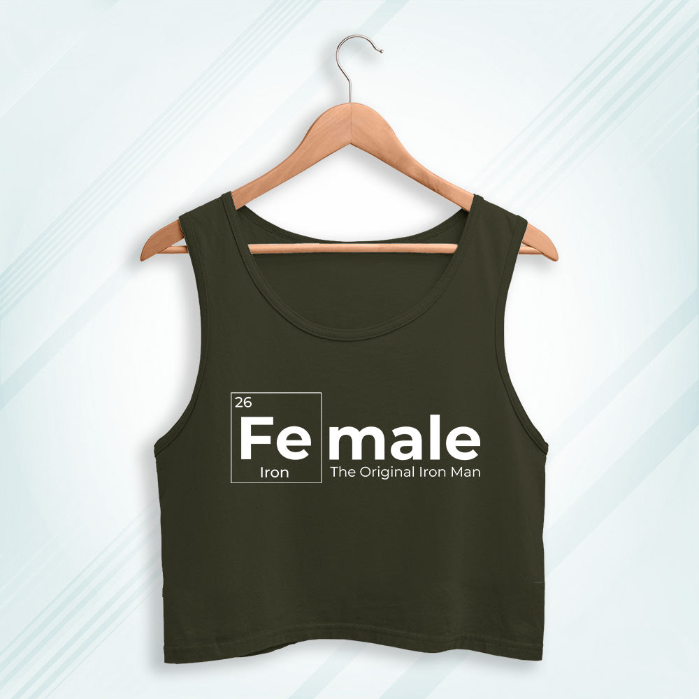Olive Green Cotton Fe-Male Printed Sleeveless Crop Tank | Women