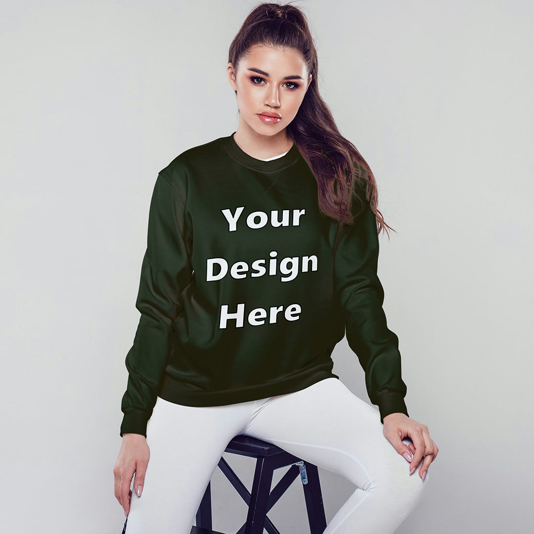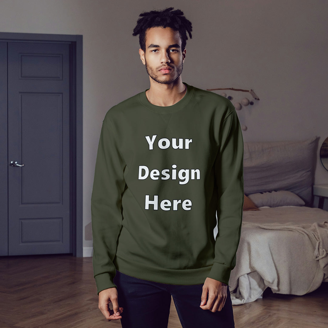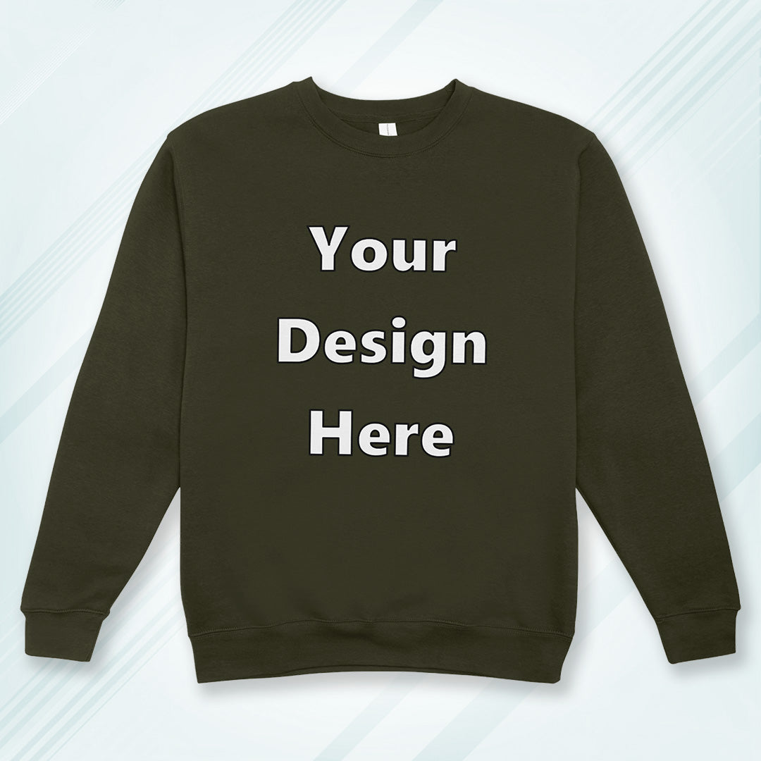 Olive Green Front Customized Cotton Solid Sweatshirt | Unisex