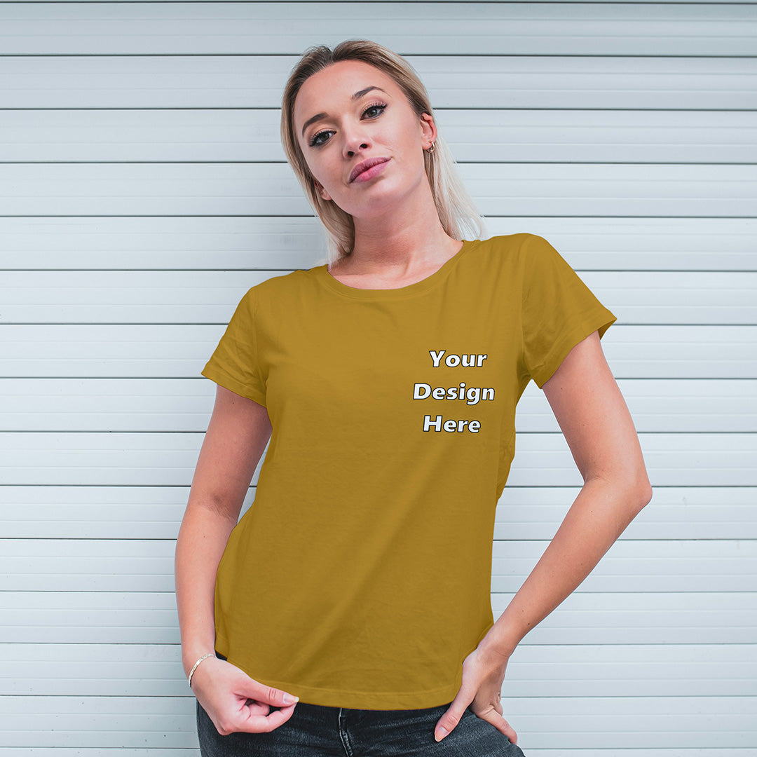 Mustard Yellow Round Neck Classic Customized T-Shirt Front Pocket Design | Women