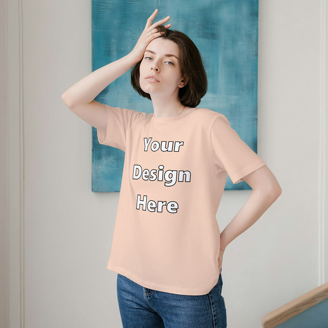 Peach Round Neck Cotton Classic Crew T-shirt Front Customized Design | Unisex