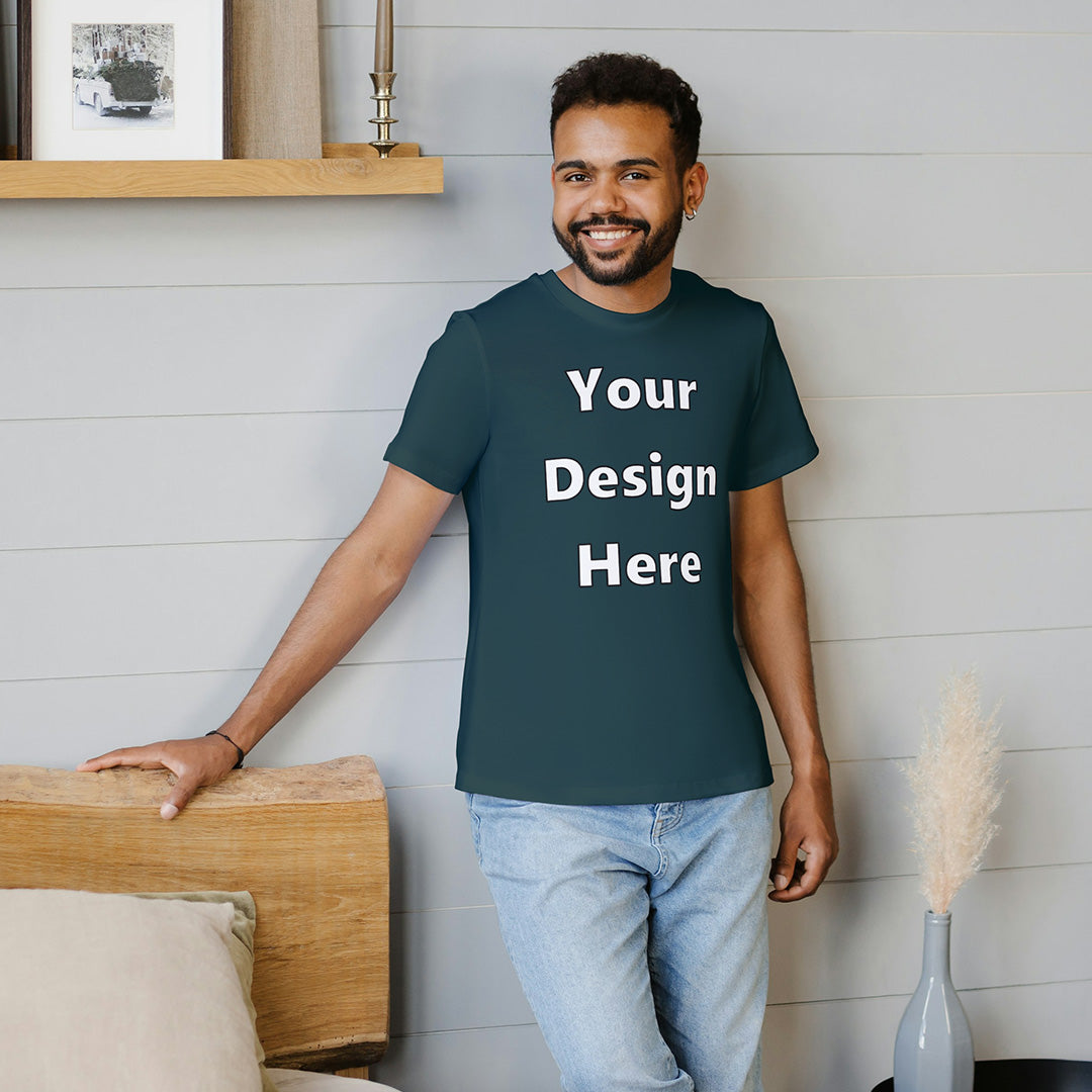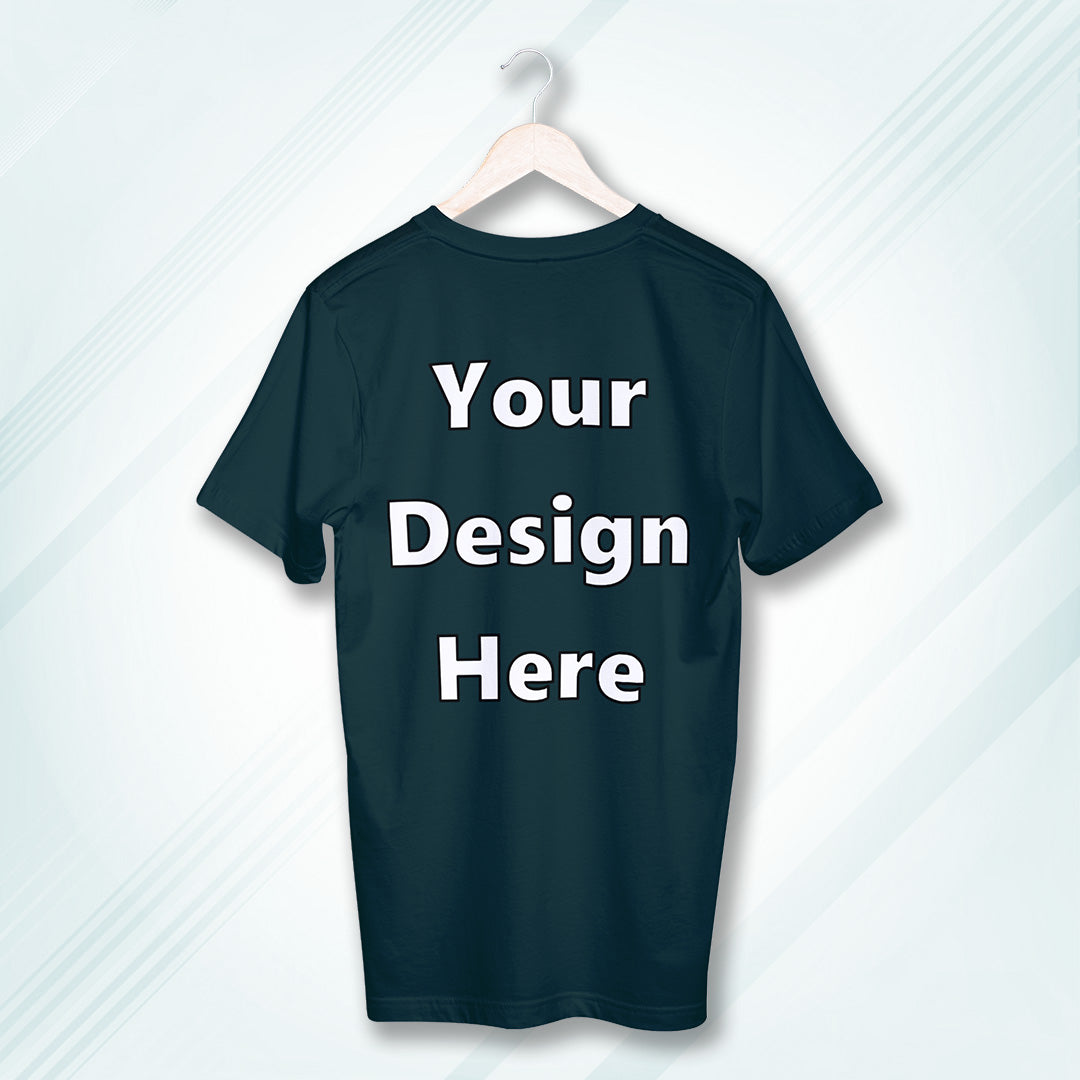 Petrol Blue Round Neck Cotton Classic Crew T-shirt Front Customized Design | Unisex