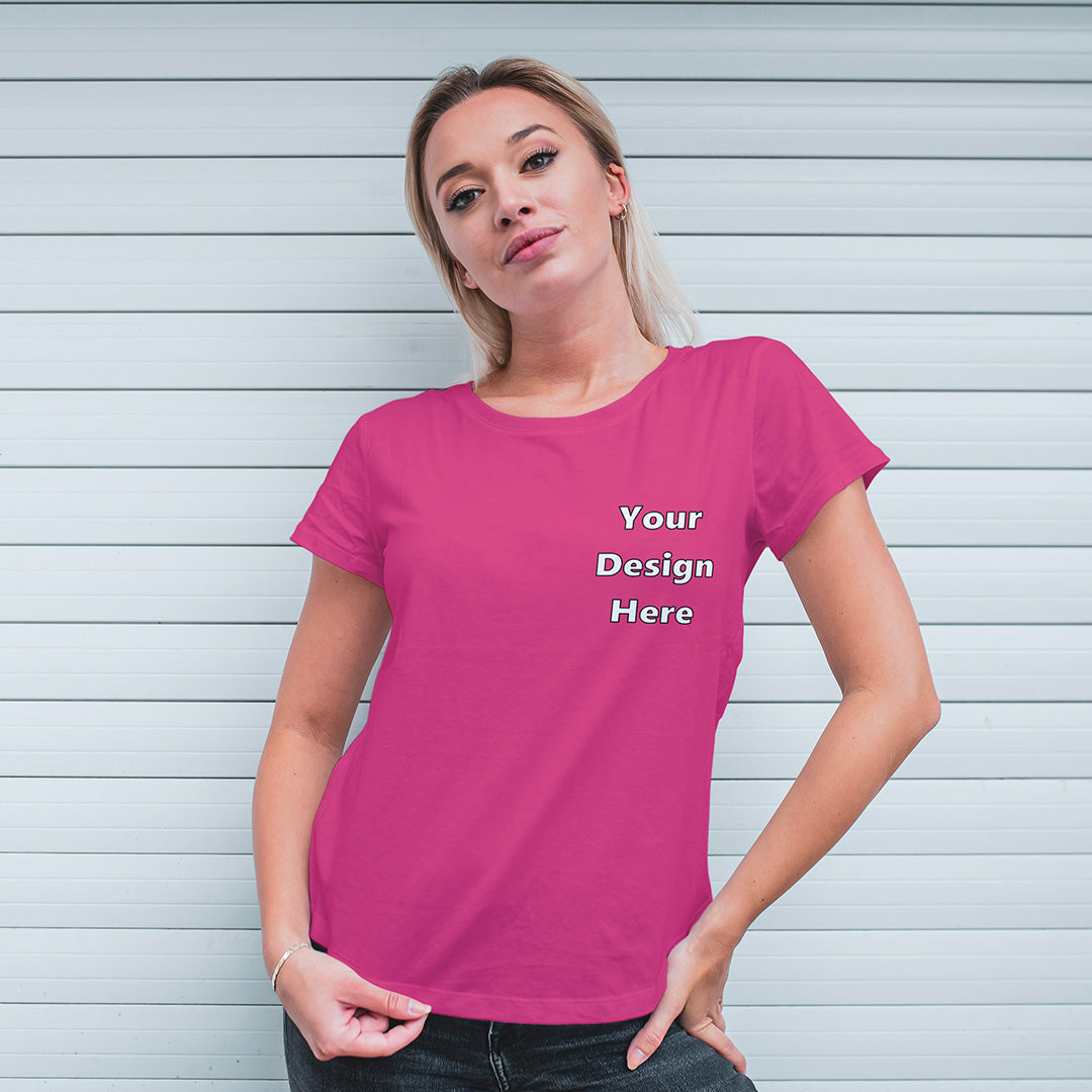 Pink Round Neck Classic Customized T-Shirt Front Pocket Design | Women