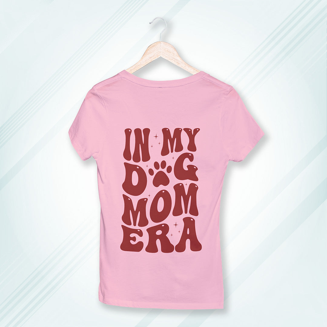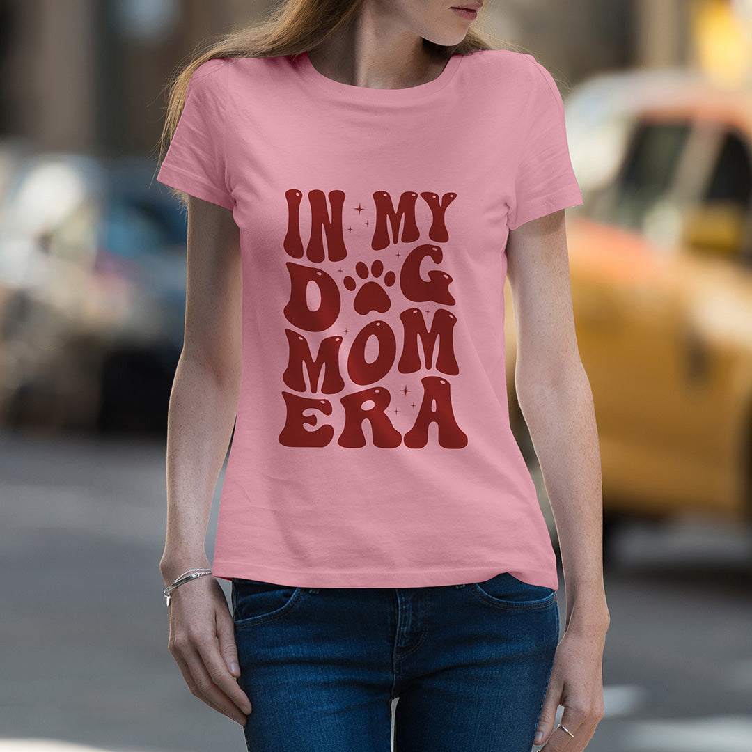 Pink Round Neck Classic Printed Classic T-Shirt Dog Mom | Women