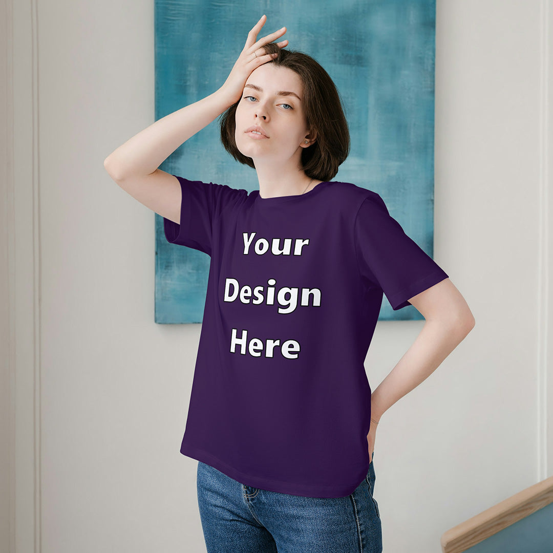 Purple Round Neck Cotton Classic Crew T-shirt Front Customized Design | Unisex