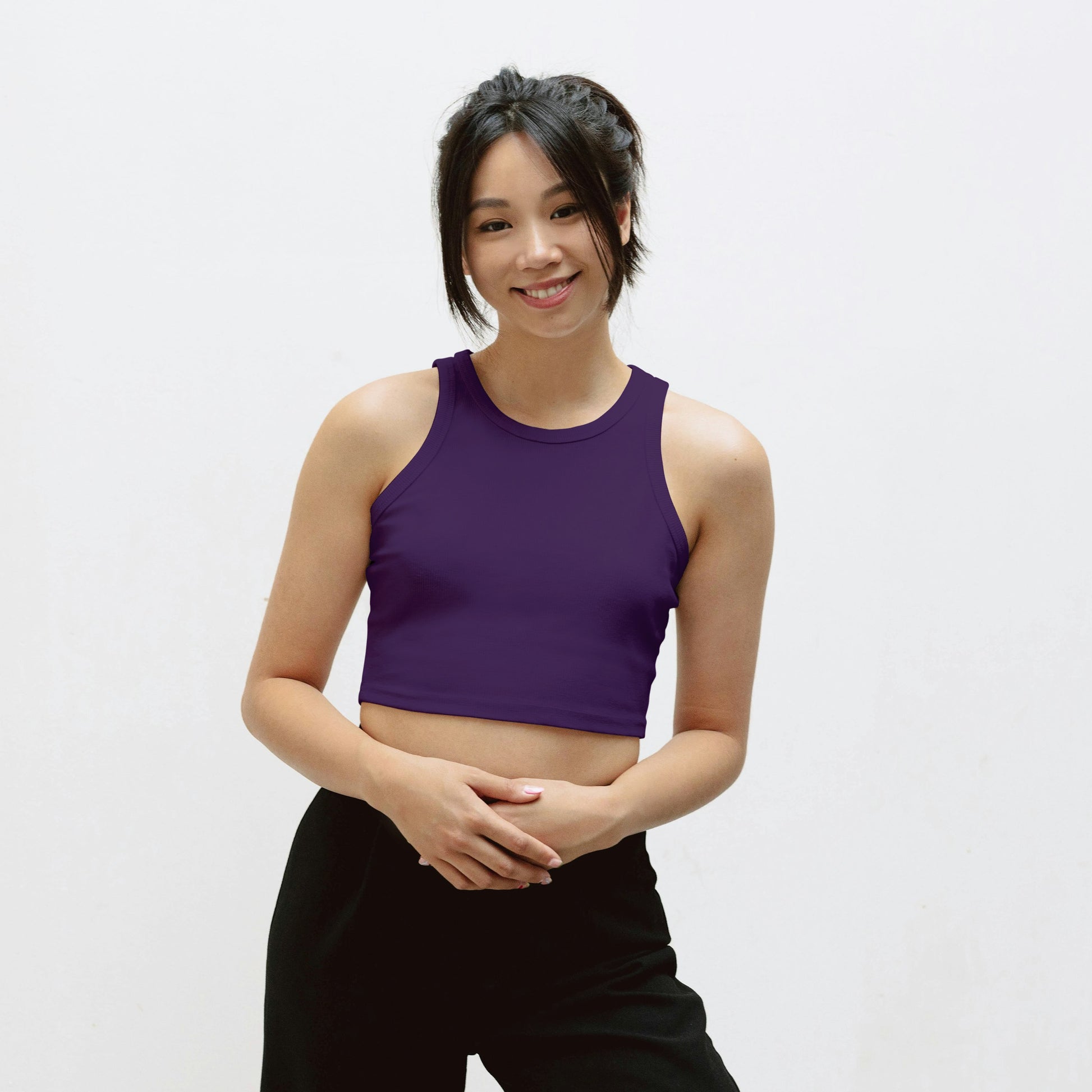 Purple Cotton Solid Sleeveless Crop Tank | Women