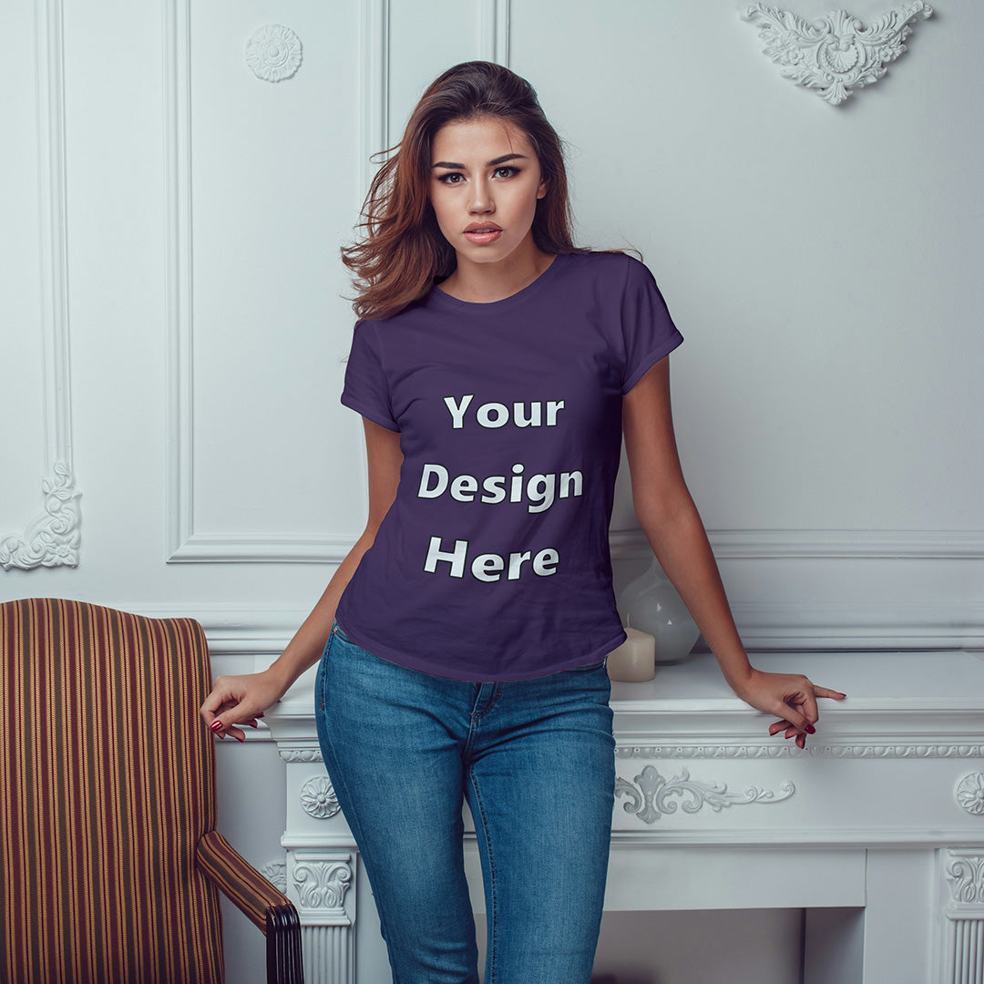 Purple Round Neck Classic Customized T-Shirt Front Design | Women