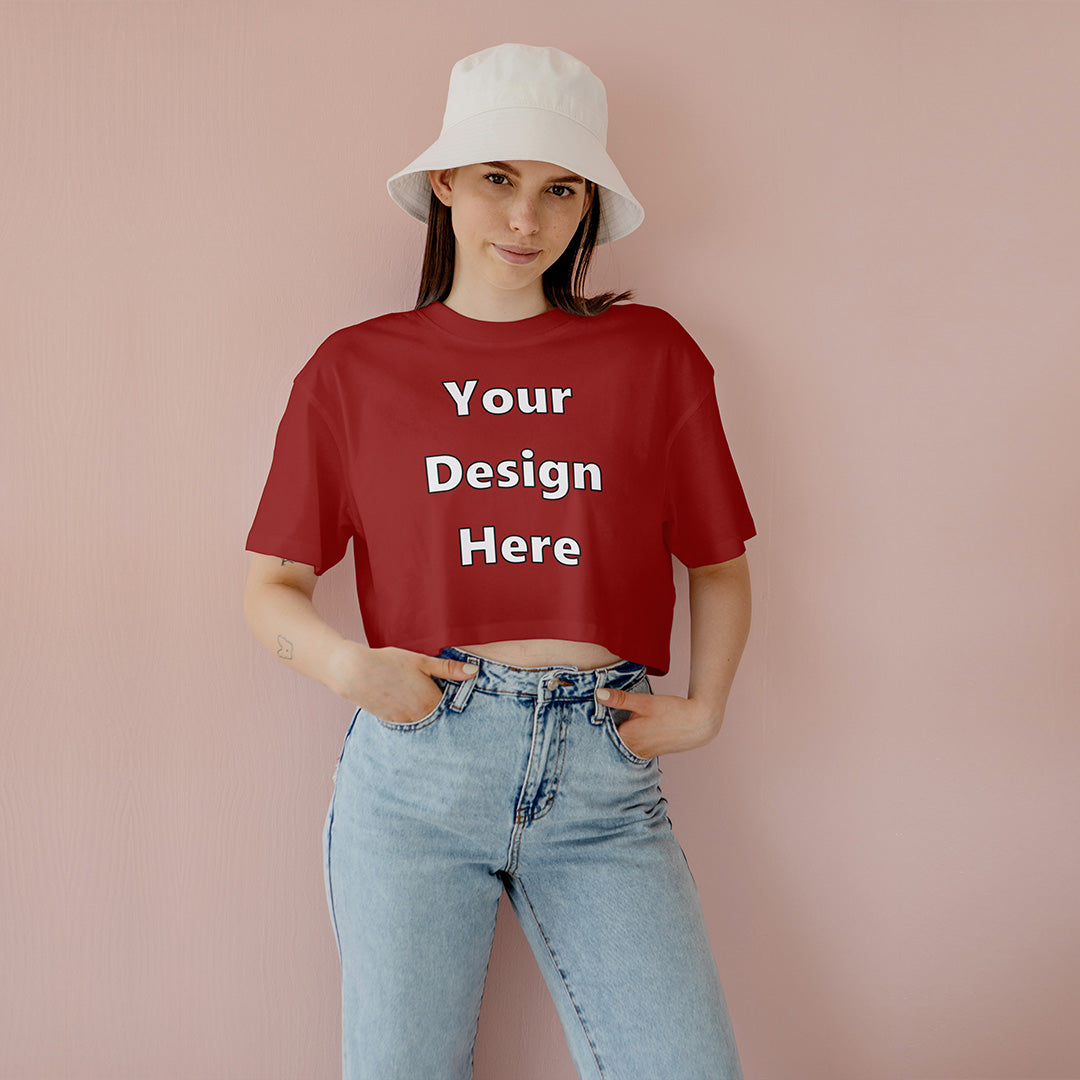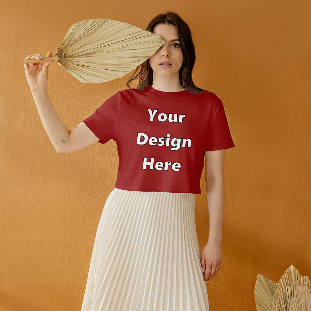 Red Cotton Plain Round Neck Half Sleeve Crop Top | Women