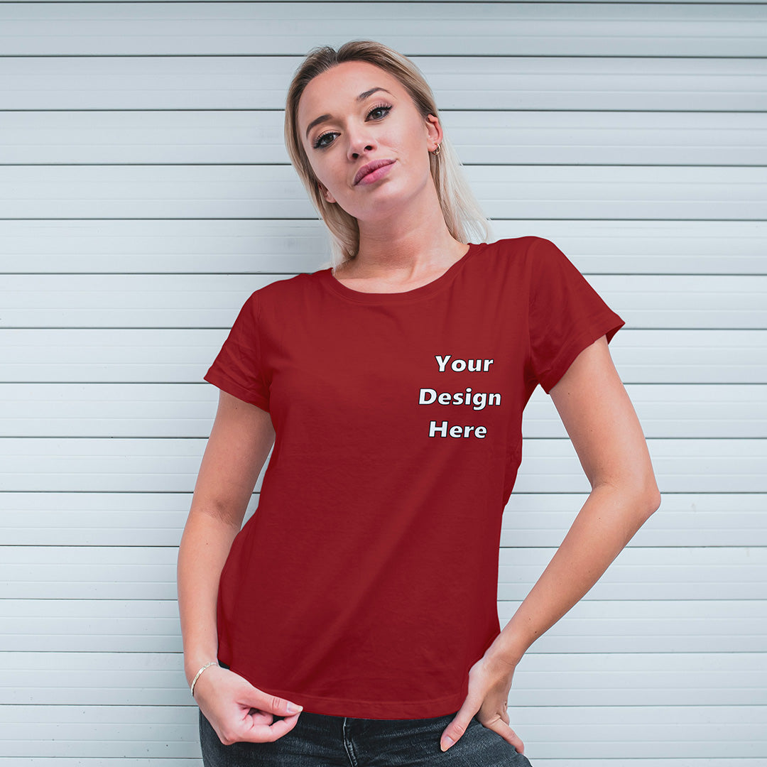 Red Round Neck Classic Customized T-Shirt Front Pocket Design | Women