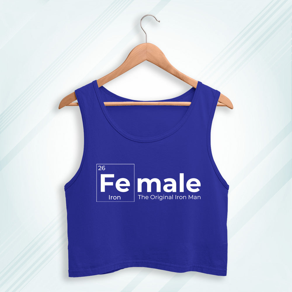 Royal Blue Cotton Fe-Male Printed Sleeveless Crop Tank | Women
