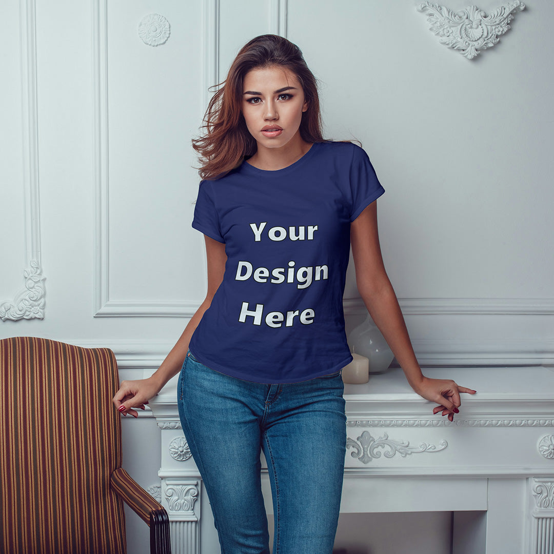 Royal Blue Round Neck Classic Customized T-Shirt Front Design | Women