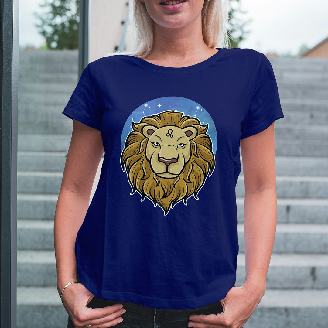 Royal Blue Round Neck Classic Printed Classic T-Shirt Leo Horoscope | Women