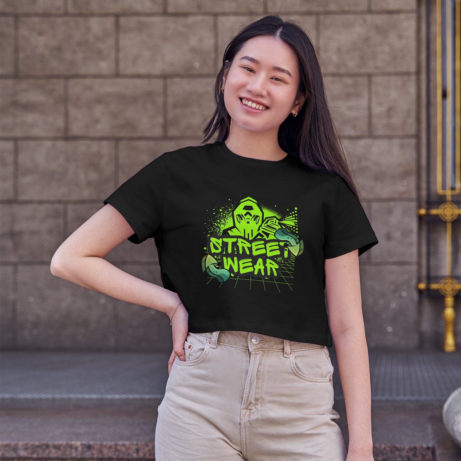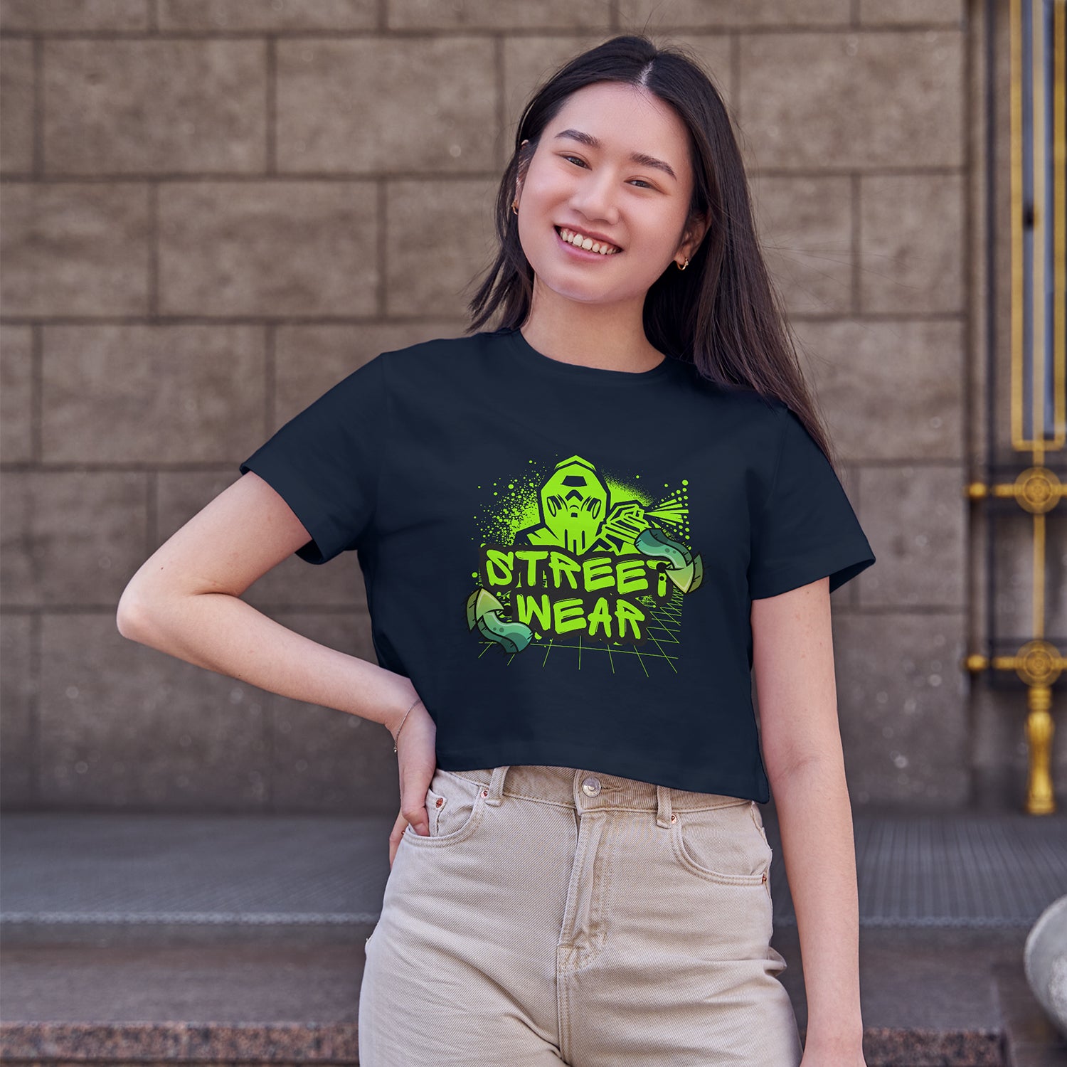 Street Wear Cotton Round Neck Half Sleeve Crop Top | Women