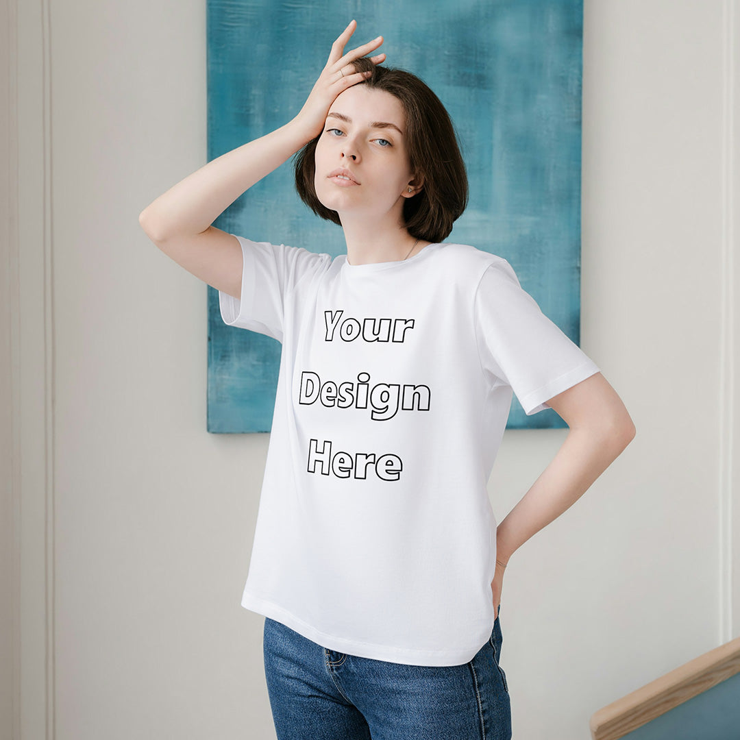 White Round Neck Cotton Classic Crew T-shirt Front Customized Design | Unisex