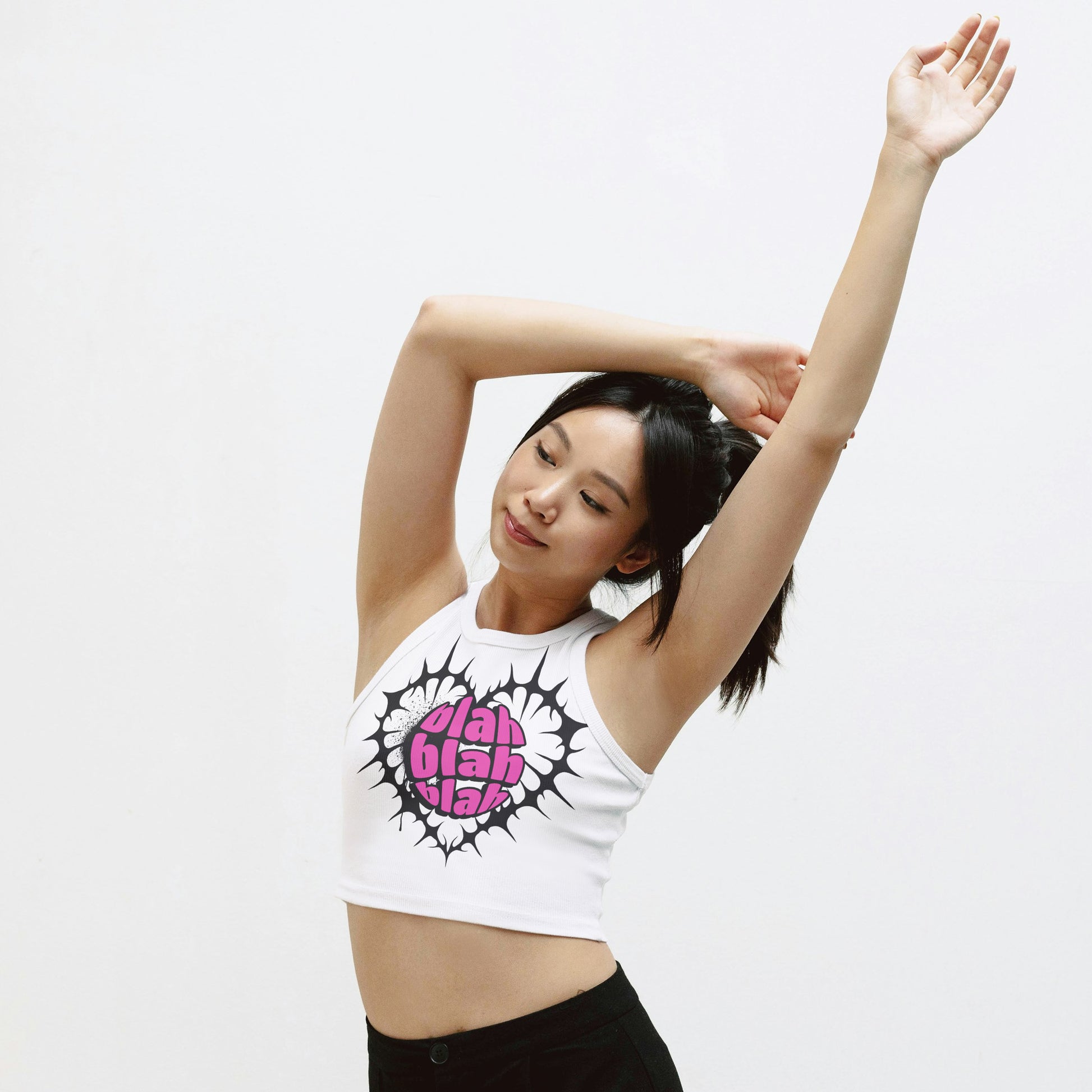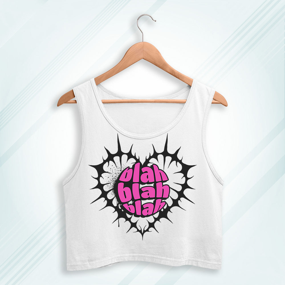 White Cotton Blah Blah Blah Printed Sleeveless Crop Tank | Women