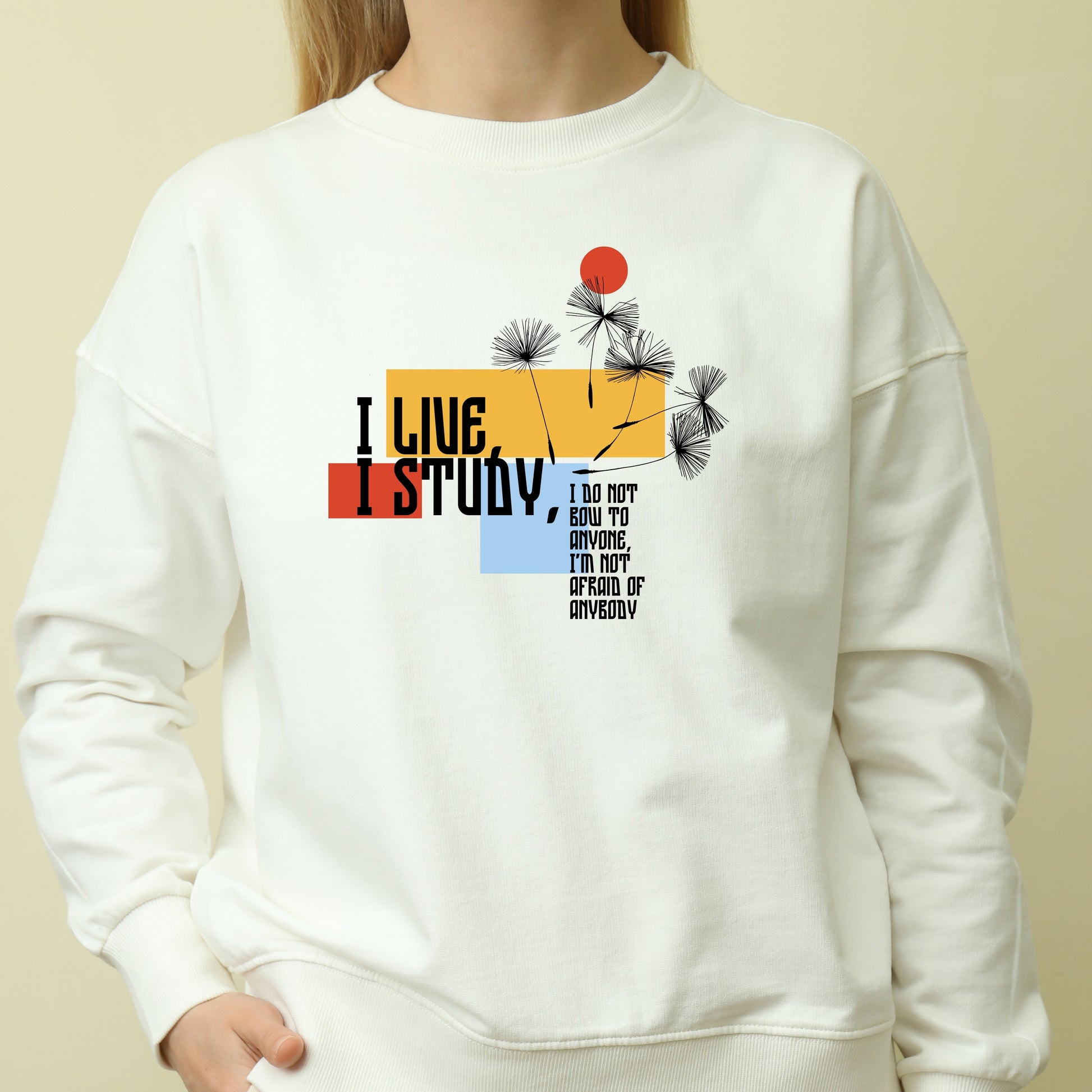 White Cotton Printed Unisex Sweatshirt I Live I Study