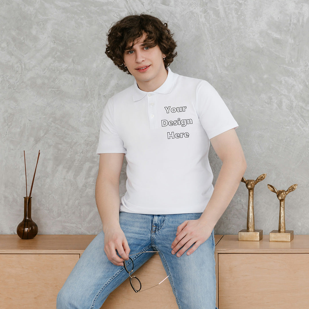 White Customized Polo T-Shirt Front Pocket Design Regular Fit | Men