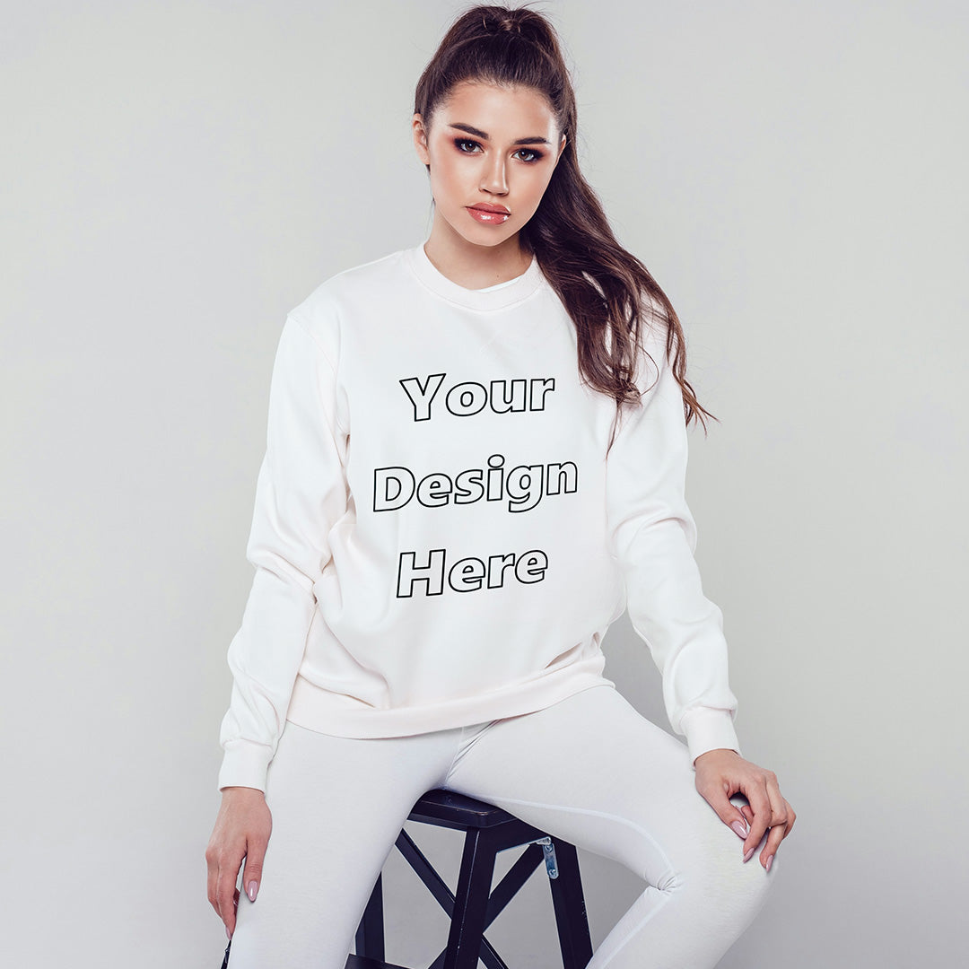 White Front Customized Cotton Solid Sweatshirt | Unisex