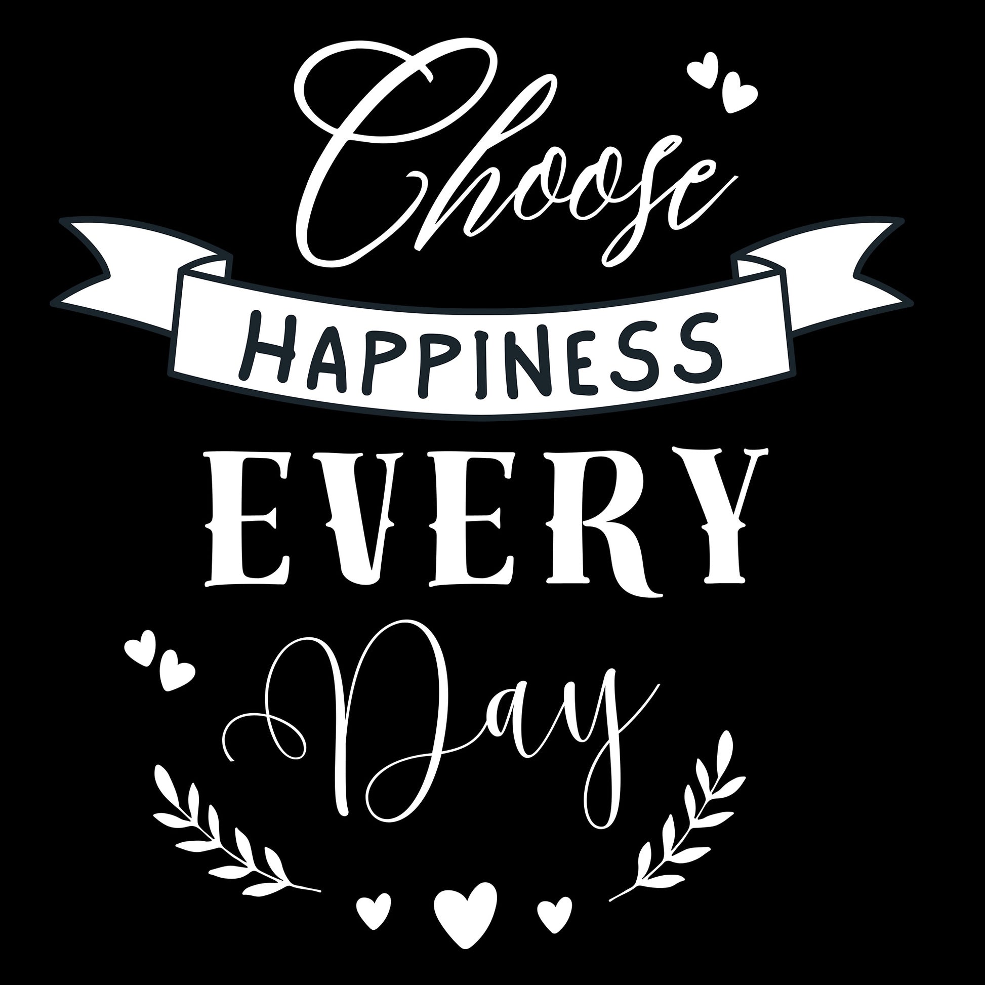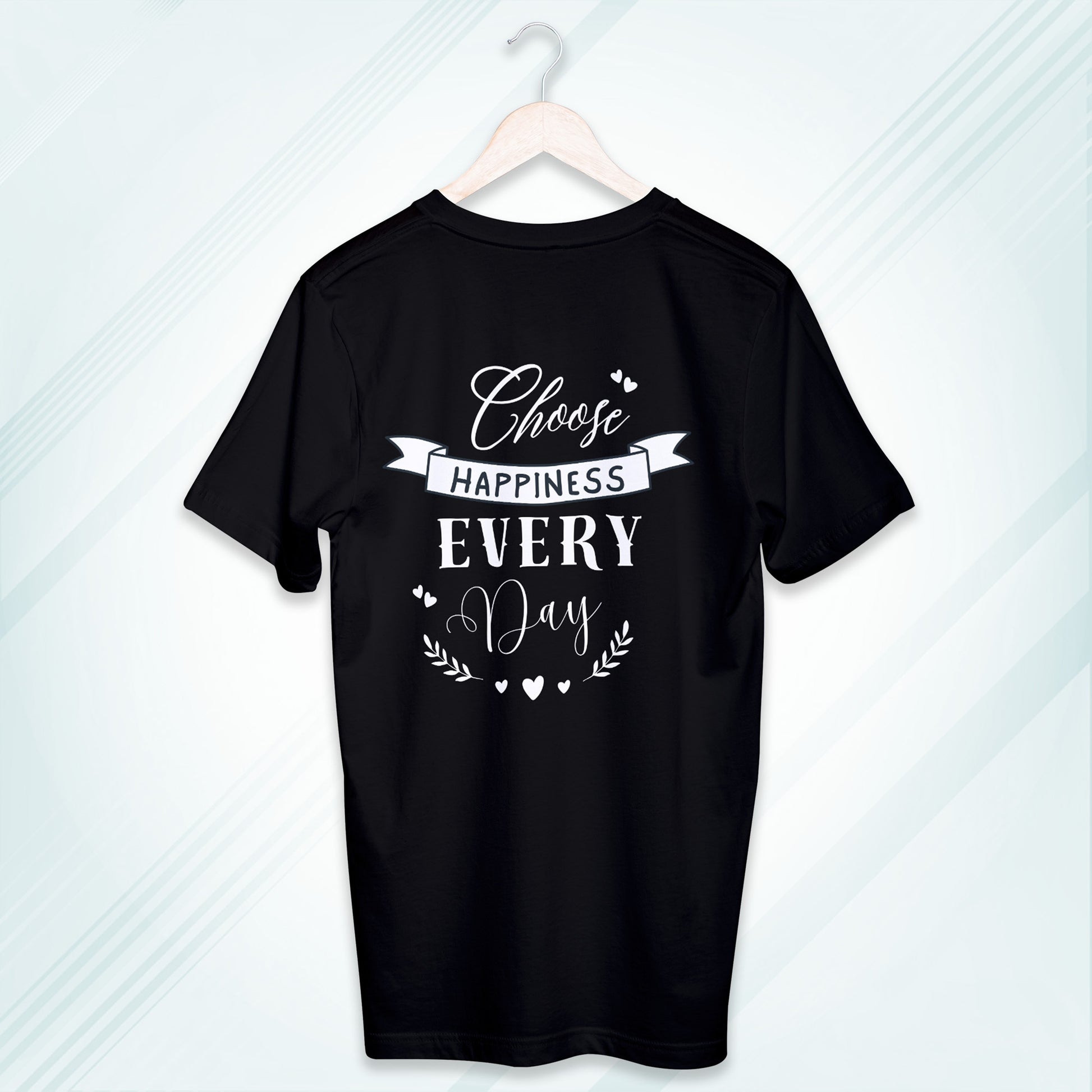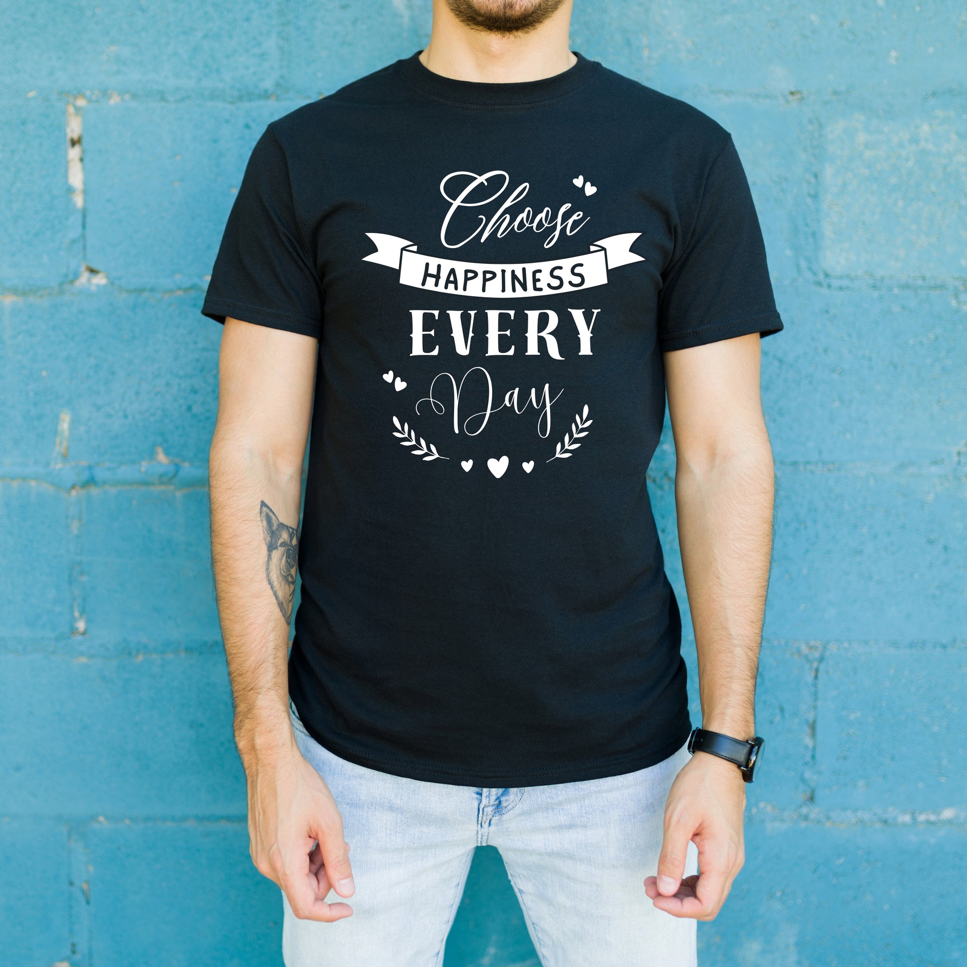 Black Round Neck Classic Crew Solid T-shirt Choose Happiness Every Day