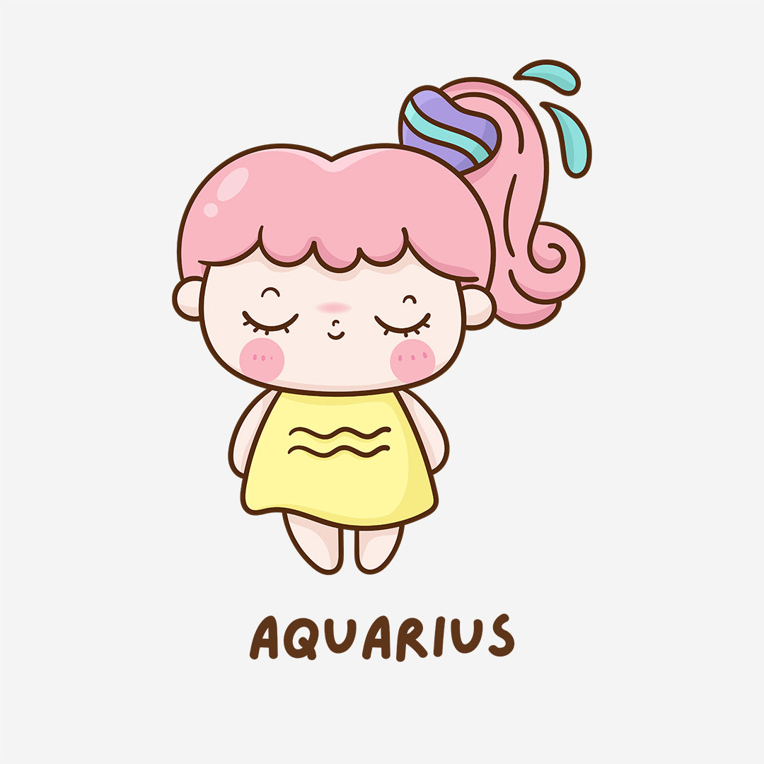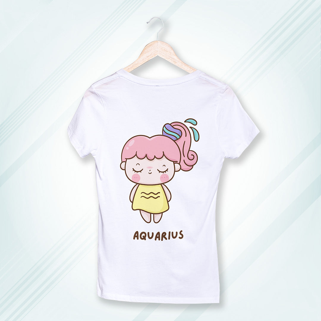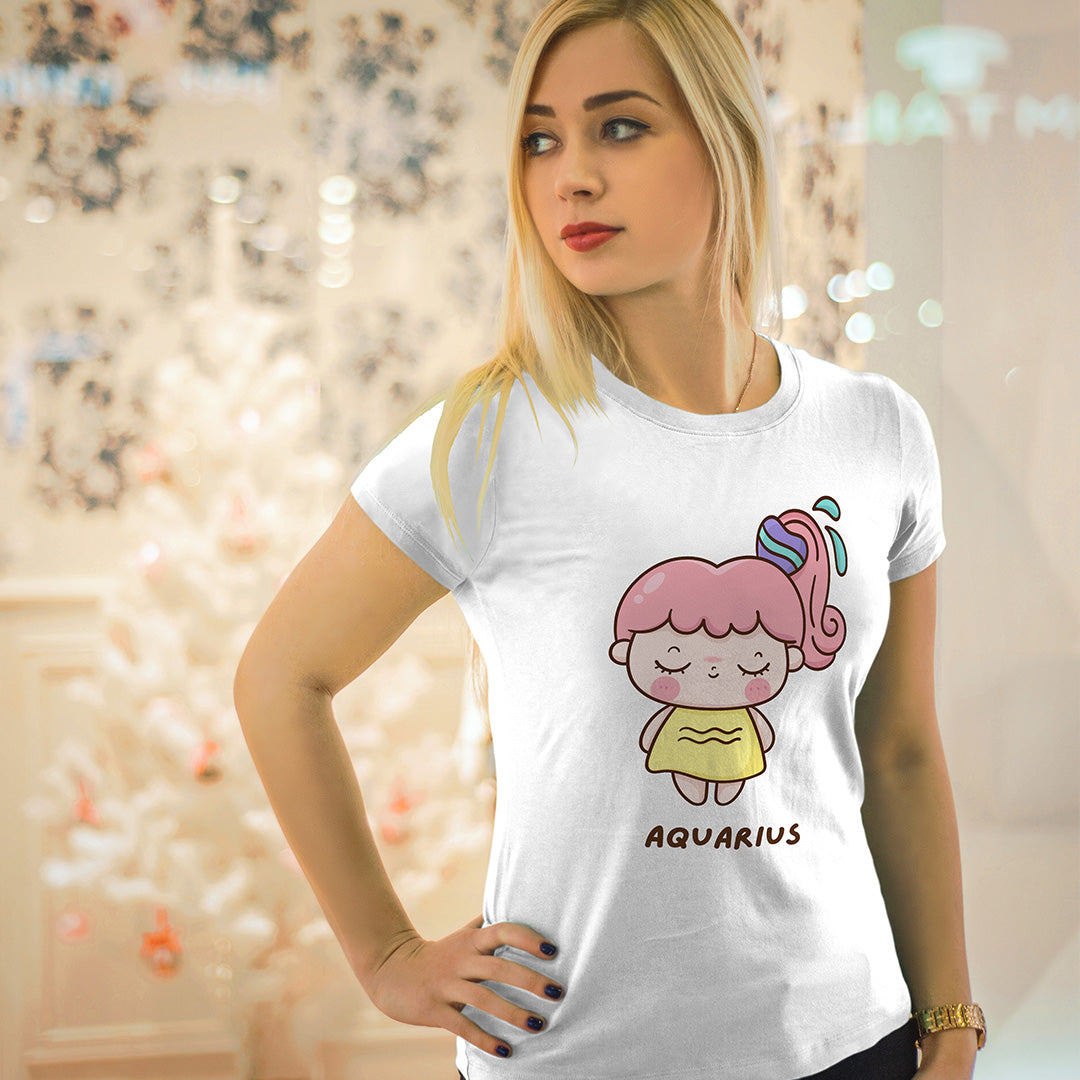 White Round Neck Classic Printed Classic T-Shirt Cute Aquarius Horoscope | Women