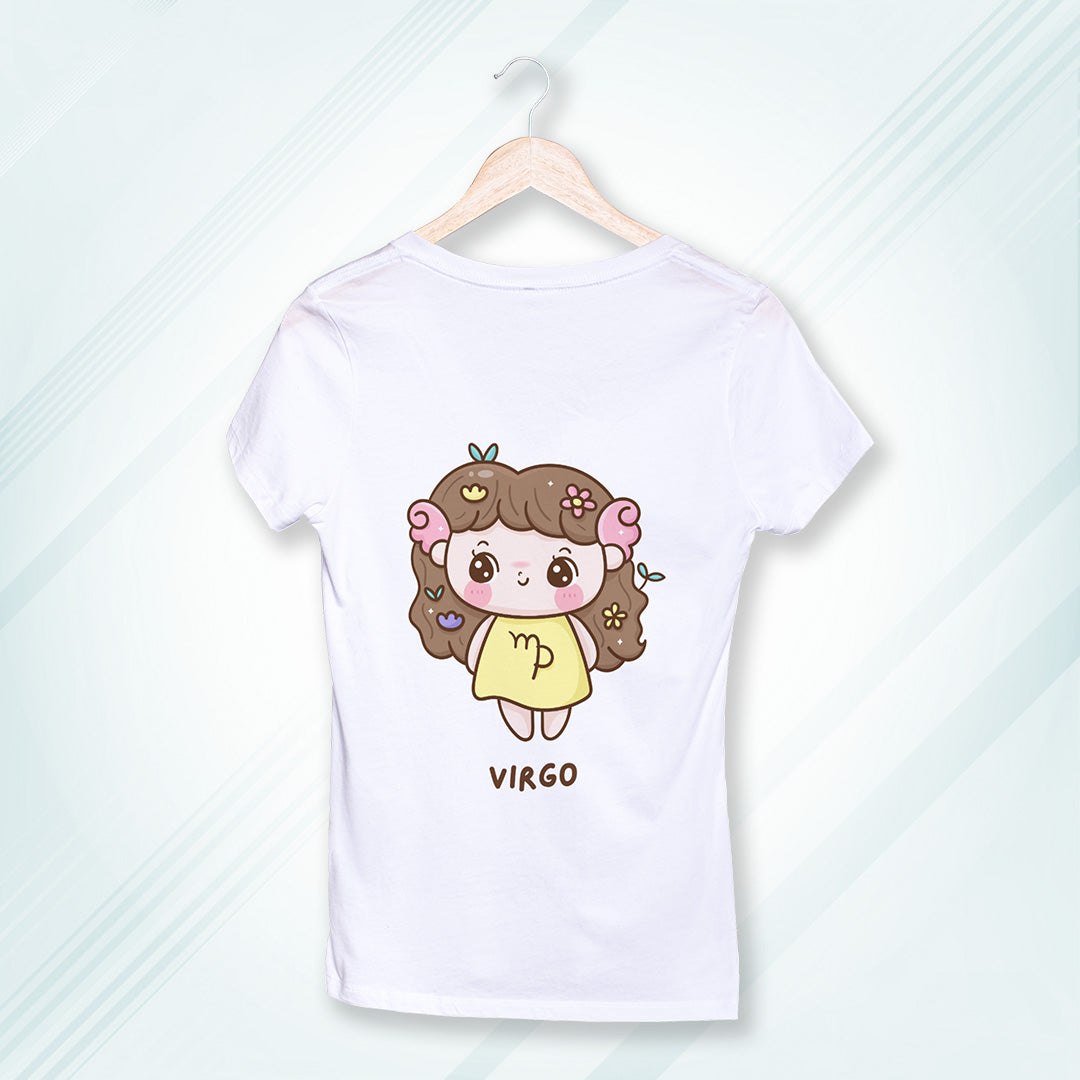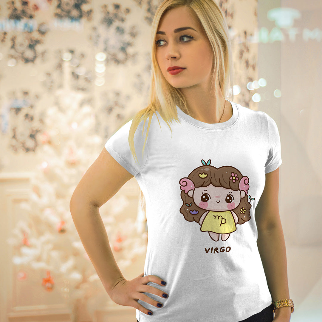 White Round Neck Classic Printed Classic T-Shirt Cute Virgo Horoscope | Women