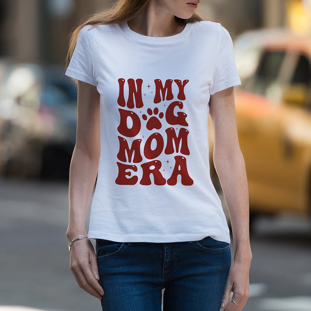White Round Neck Classic Printed Classic T-Shirt Dog Mom | Women