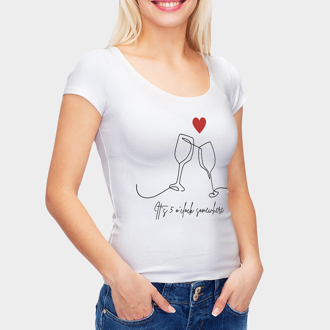 White Round Neck Classic Printed Classic T-Shirt Its 5 o'clock somewhere | Women