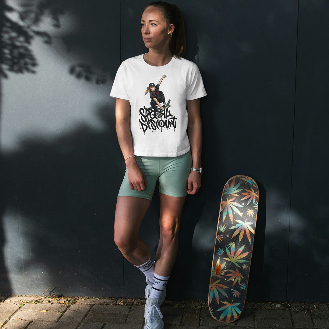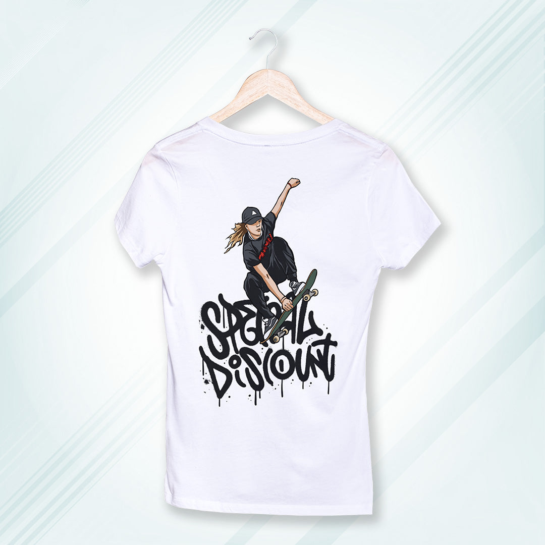 White Round Neck Classic Printed Classic T-Shirt Special Discount Skate | Women
