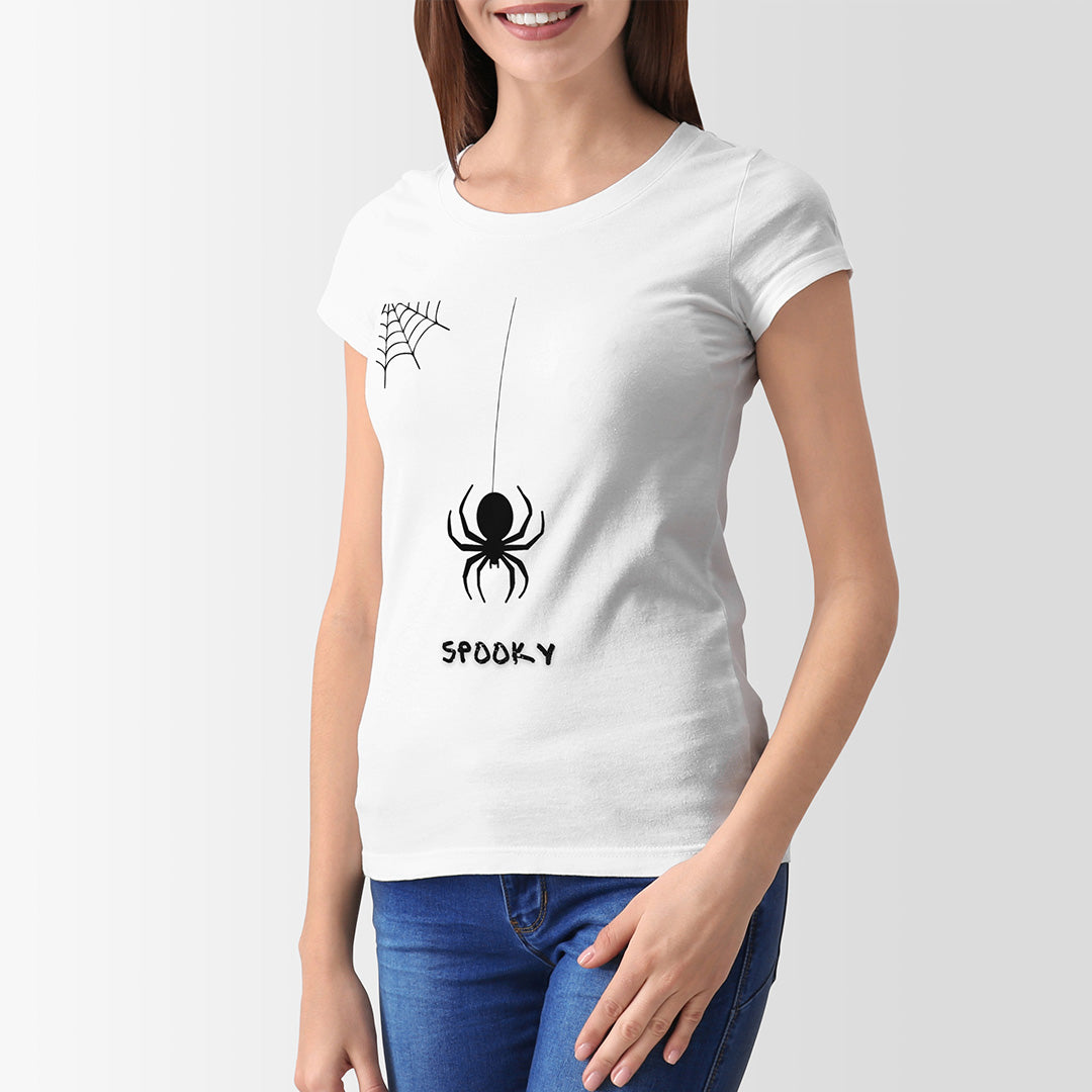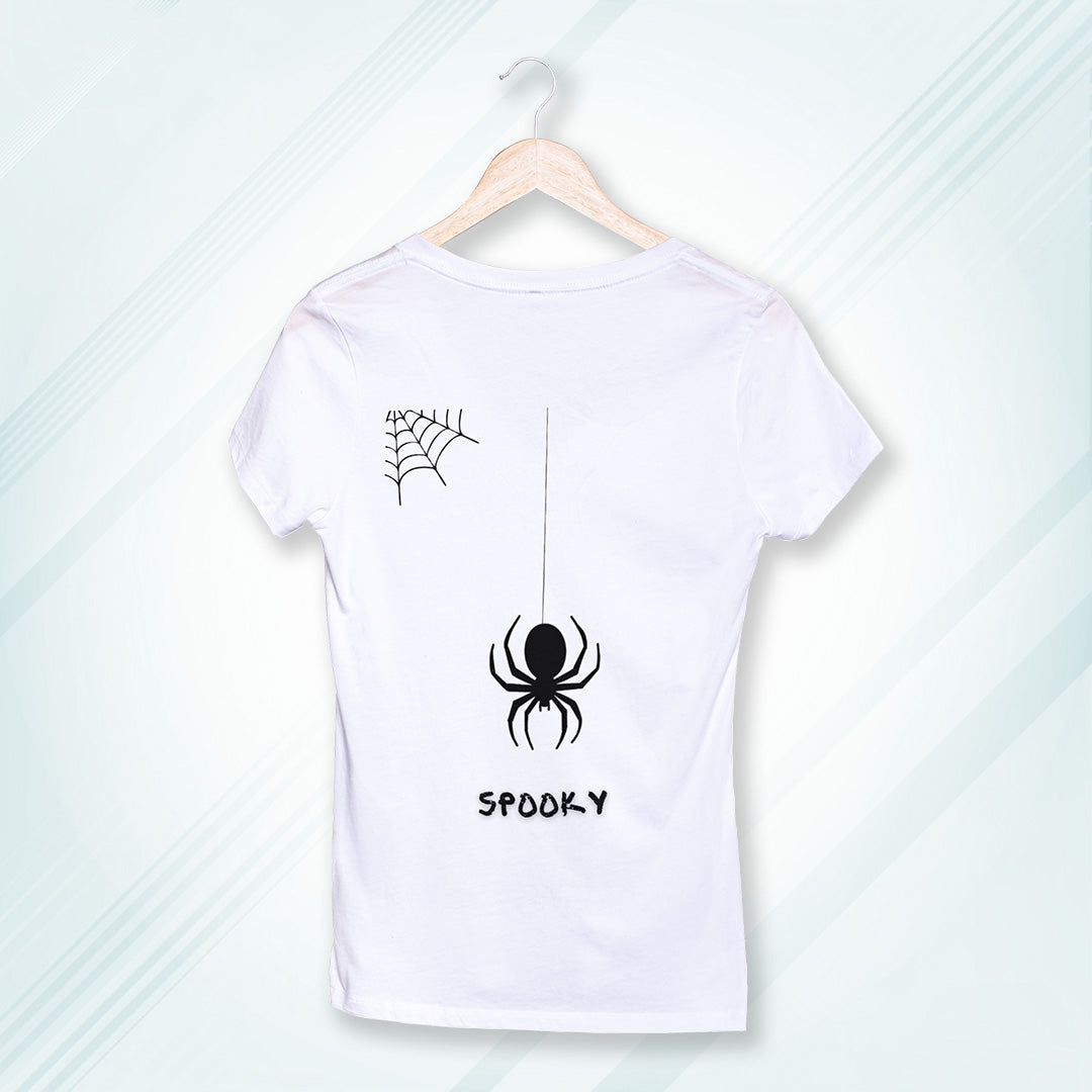 White Round Neck Classic Printed Classic T-Shirt Spooky Spider | Women