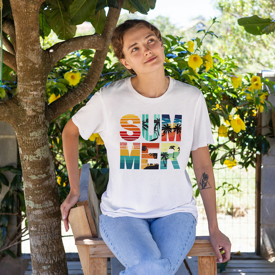 White Round Neck Classic Printed Classic T-Shirt Futuristic Space | Women