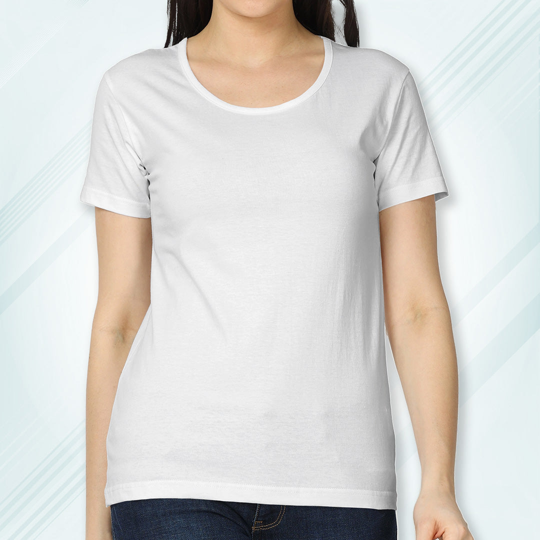 White Round Neck Classic Printed Classic T-Shirt Futuristic Space | Women