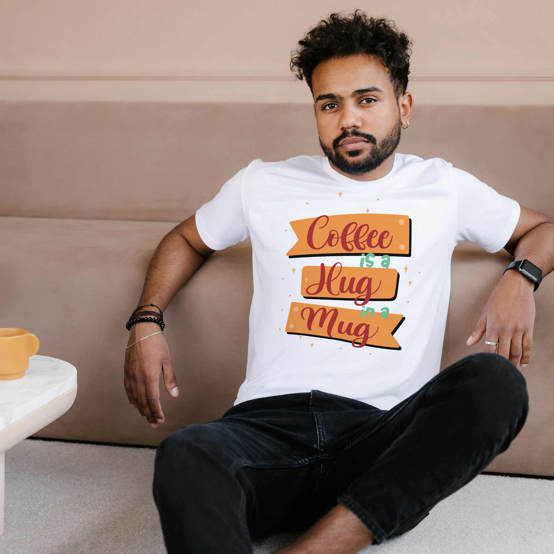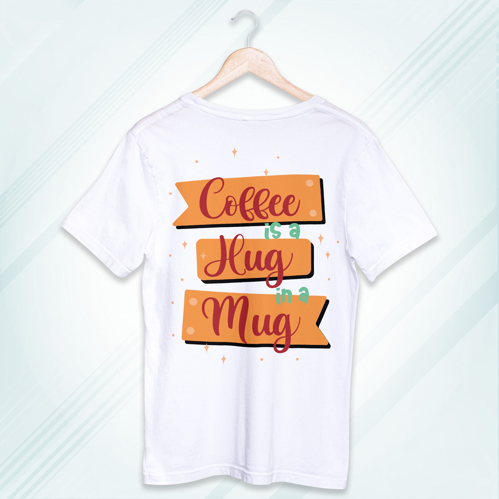 White Round Neck Oversized Cotton Printed T-shirt Coffee is a Hug in a Mug Unisex