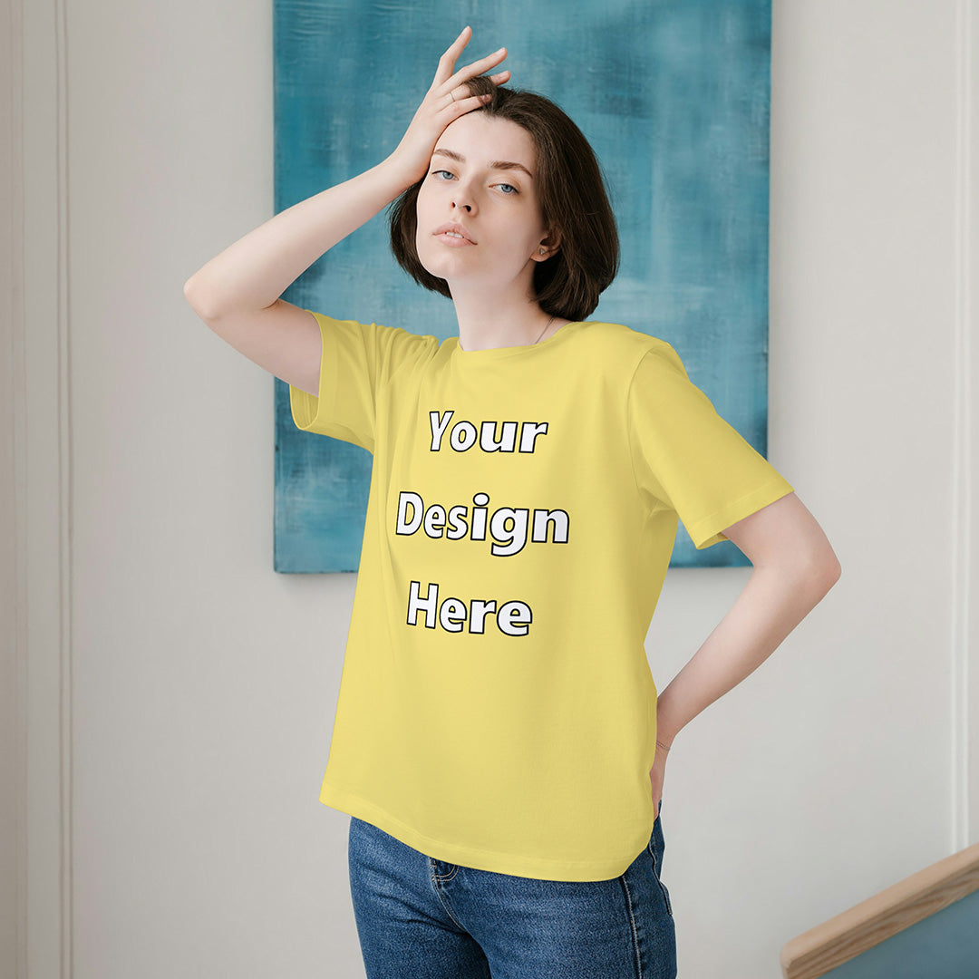 Yellow Round Neck Cotton Classic Crew T-shirt Front Customized Design | Unisex